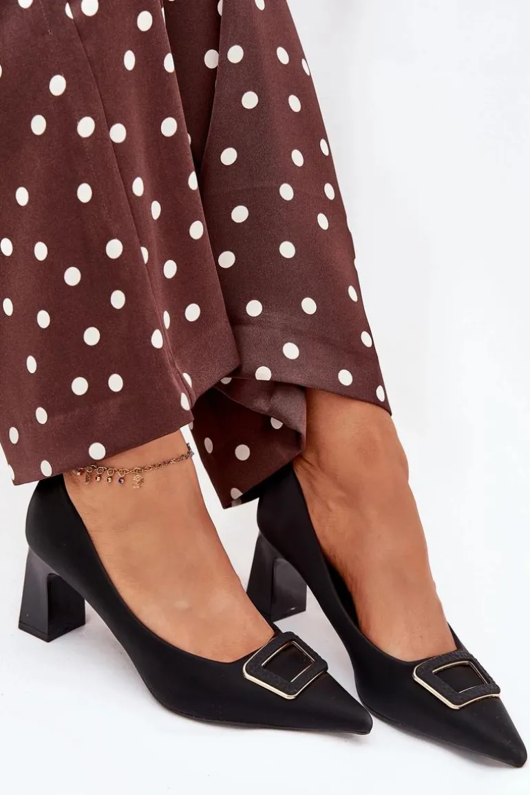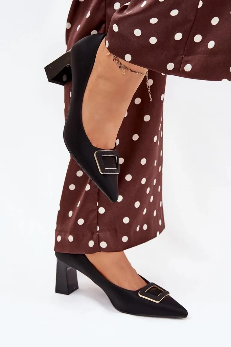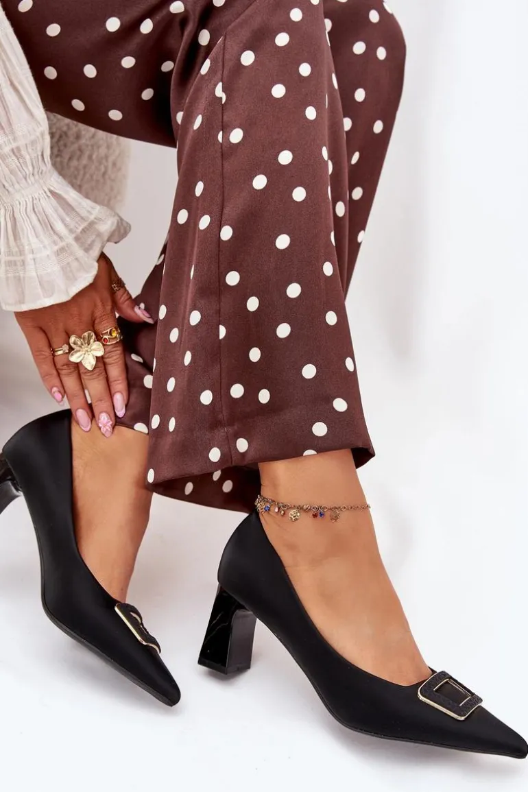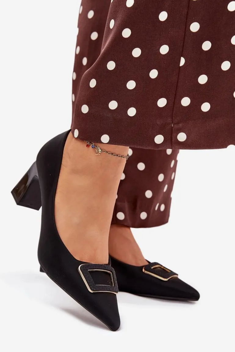 Czółenka Na Słupku Z Ozdobną Klamrą Czarne Seriva