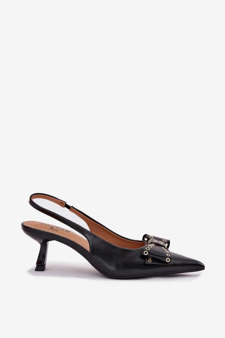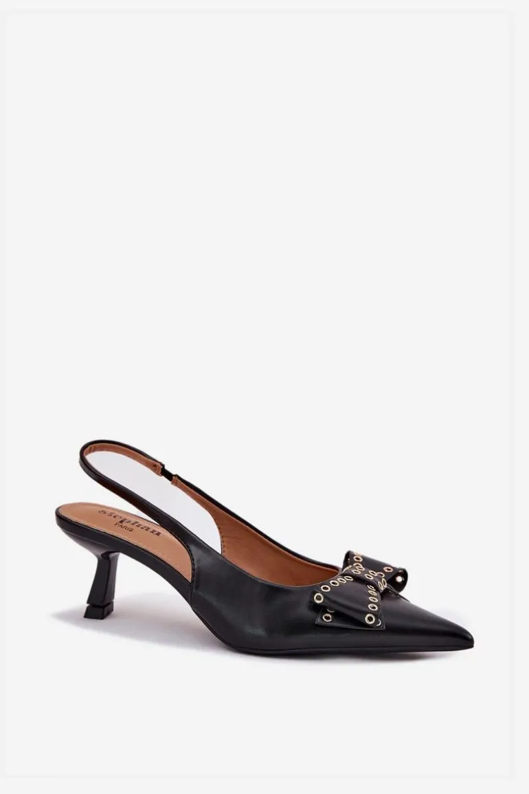 Czółenka Na Szpilce Z Kokardą Czarne Folesca