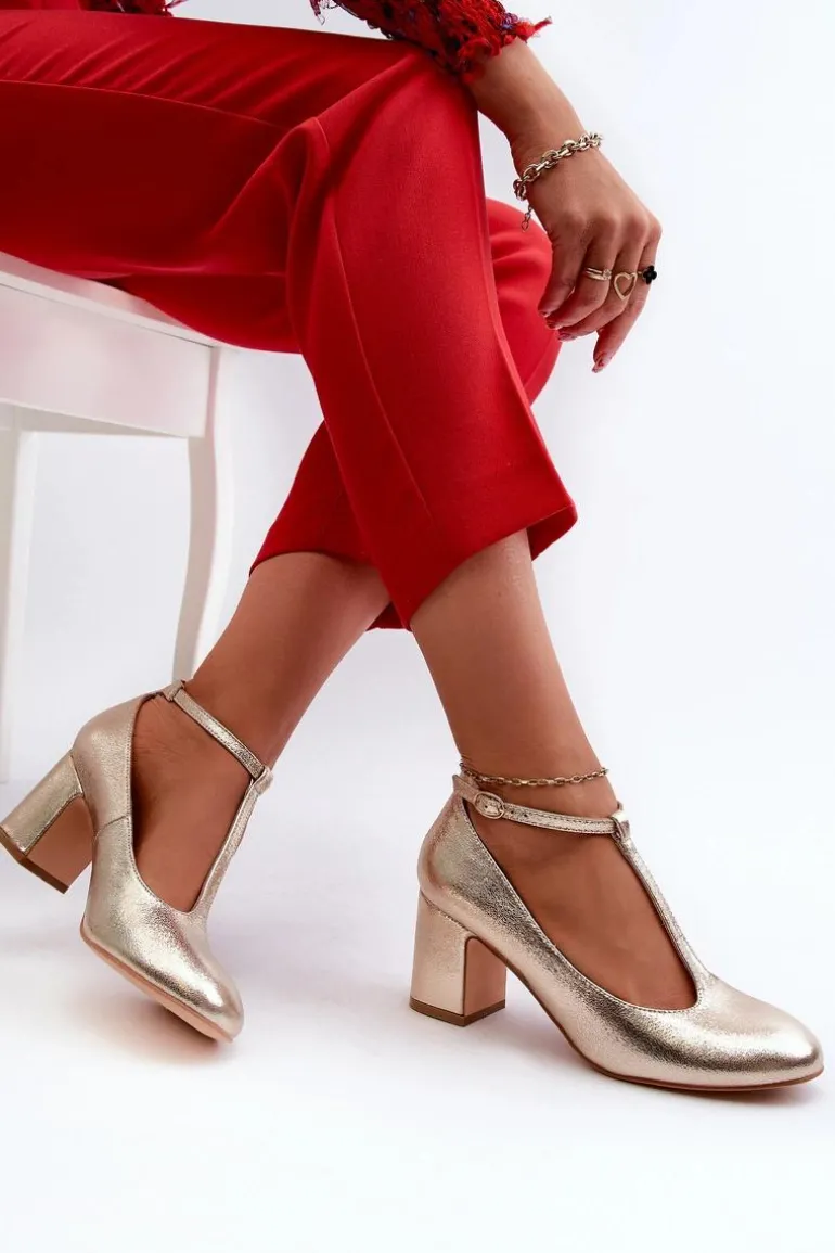 Czółenka damskie wykonane z eko skóry to idealne obuwie dla kobiet ceniących styl i wygodę. Stabilny obcas w postaci słupka. Z przodu delikatny paseczek, który dodaje im subtelności i uroku. Zapinane na regulowany pasek ze sprzączką, gwarantują precyzyjne dopasowanie do stopy. Noski zaokrąglone. Wkładka ze skóry naturalnej. Doskonałe na wiele okazji, od codziennych stylizacji po specjalne wydarzenia. Przy wyborze rozmiaru prosimy sugerować się tabelą rozmiarów.