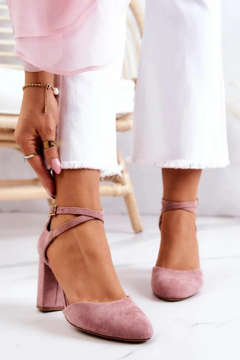 Czółenka Zamszowe Na Słupku Sergio Leone SK851 Różowe
