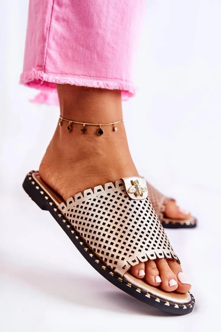 Damskie Ażurowe Klapki Z Ozdobą Złote Terrys