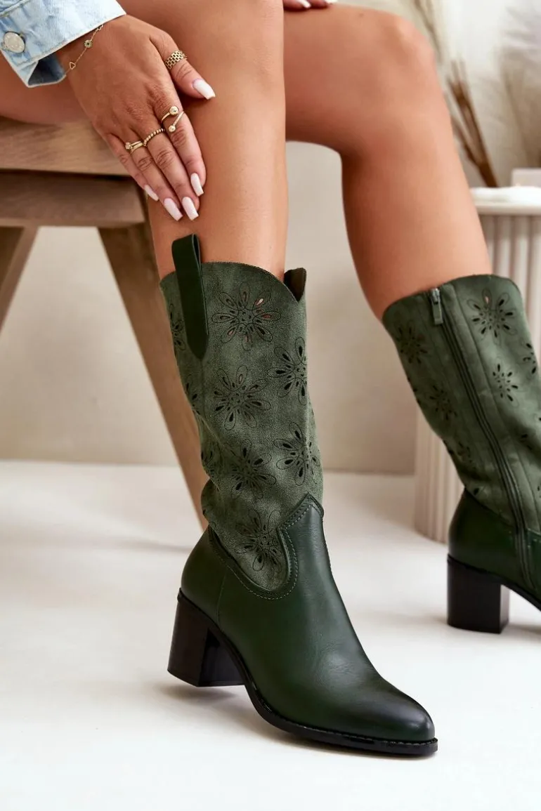 Kozaki damskie marki Jezzi to stylowy wybór na chłodniejsze dni. Wykonane z eko zamszu, charakteryzują się eleganckim designem, który podkreśla ich klasyczny wygląd. Noski w kształcie migdała dodają subtelnej elegancji. Ażurowa cholewka sięga do połowy łydki. Środek buta ocieplony jest wyłącznie na wysokości stopy. Te kozaki doskonale sprawdzą się zarówno w codziennych, jak i bardziej eleganckich stylizacjach, dodając im stylowego akcentu. Przy wyborze rozmiaru prosimy sugerować się tabelą rozmiarów.