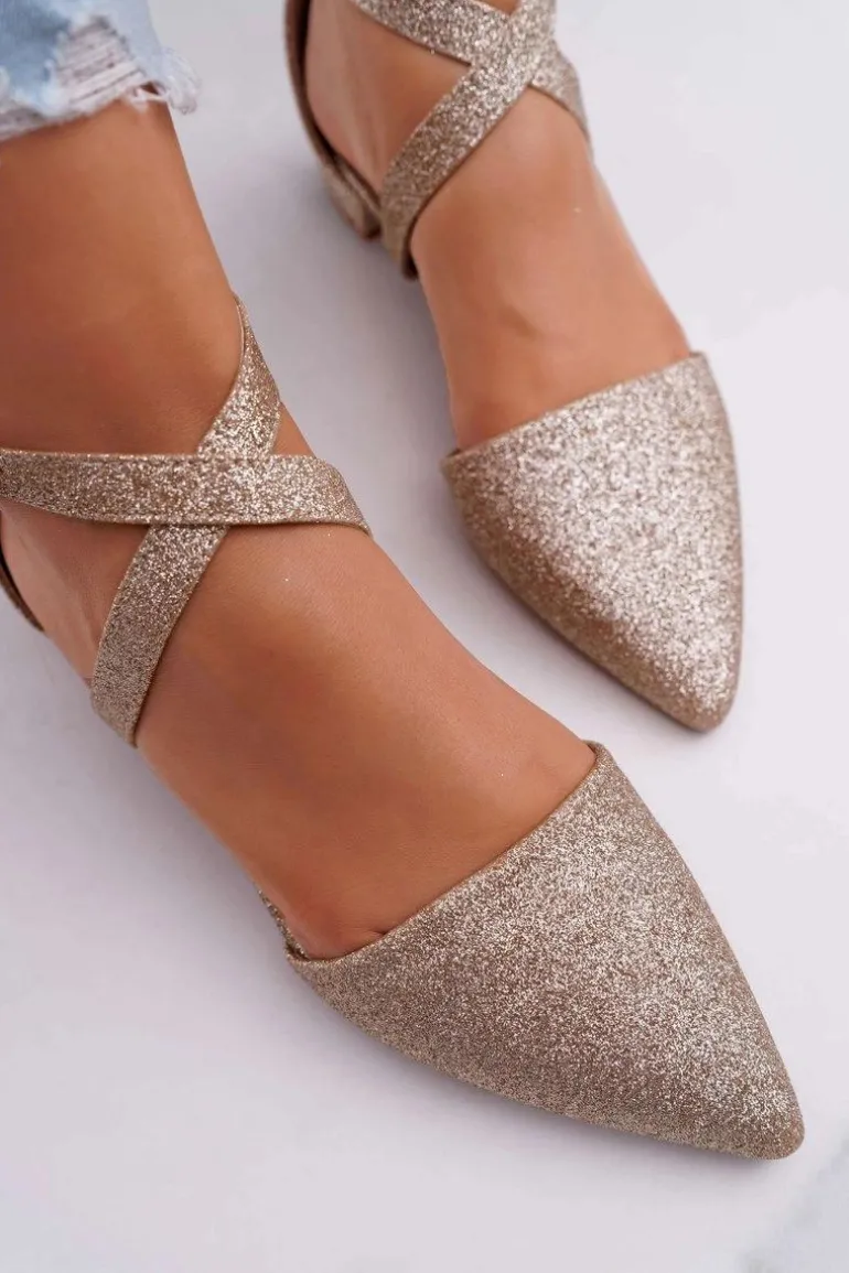 Damskie Balerinki Brokatowe w Szpic Złote Vontare