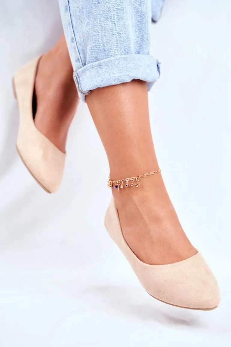 Damskie Balerinki Zamsz Beżowe Bueno