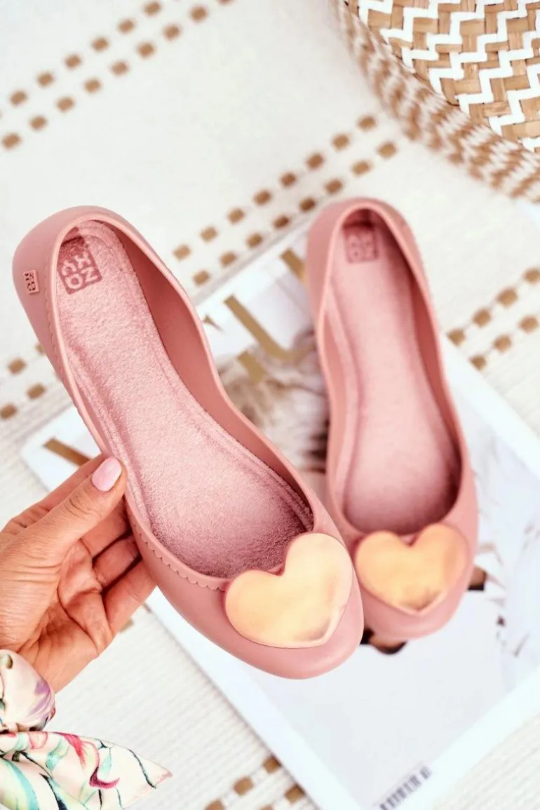 Wspaniała kolekcja gumowych, pachnących balerinek marki ZAXY. Wodoodporne, antypoślizgowe i przyjazne dla stóp. Uniwersalne najwyższej jakości baleriny, wykonane z miękkiego gumowego tworzywa. Zdobione serduszkiem, które nadaje im niesamowitego uroku. Wkładka wykonana z miękkiej pianki pokrytej przyjemnym w dotyku materiałem, która zadba o nasz komfort. Przy wyborze rozmiaru prosimy kierować się tabelą rozmiarów.