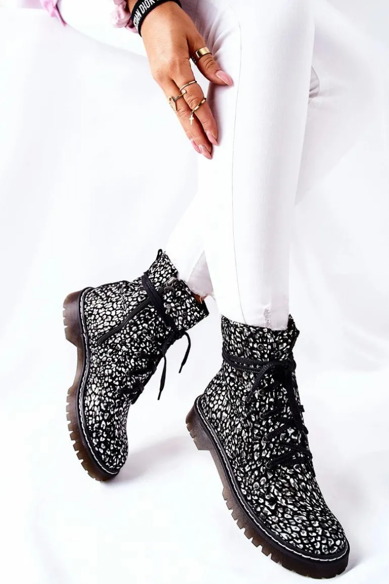 Damskie Botki Glany Workery Maciejka Czarno-Białe 01609-48