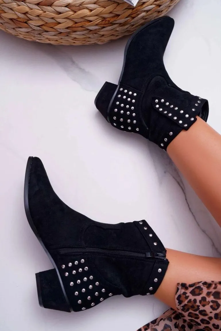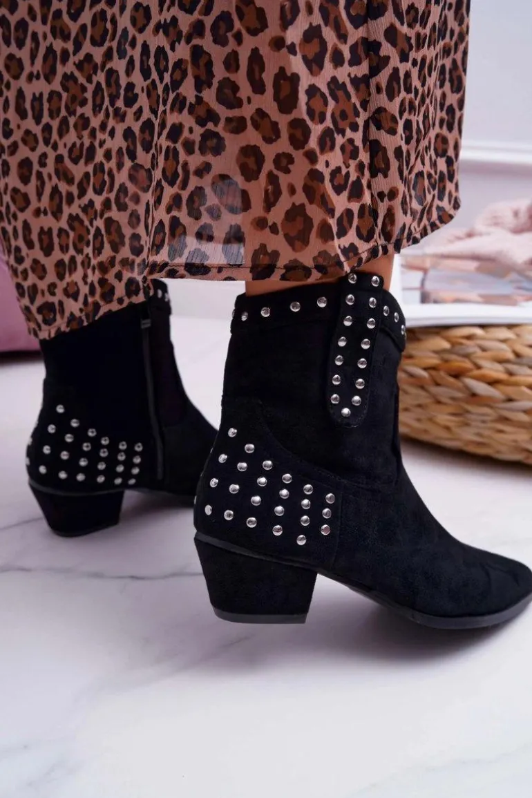 Damskie Botki Kowbojki Płaski Obcas Czarne Fine