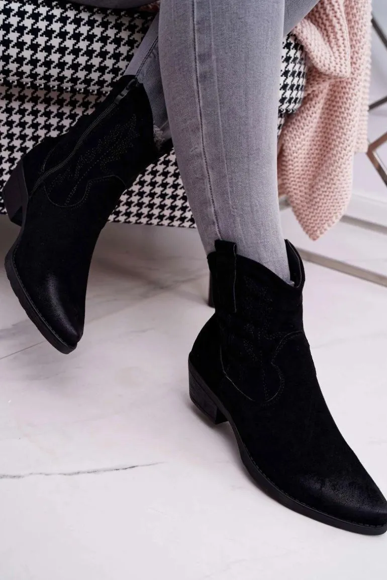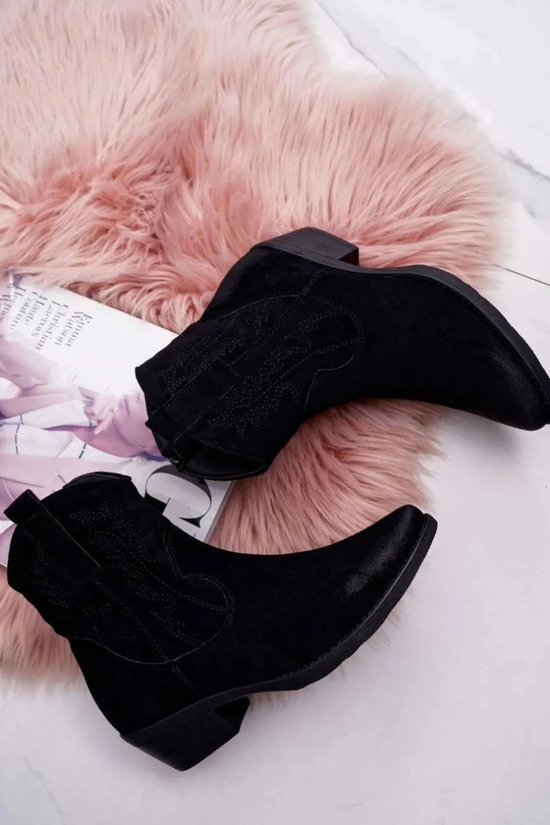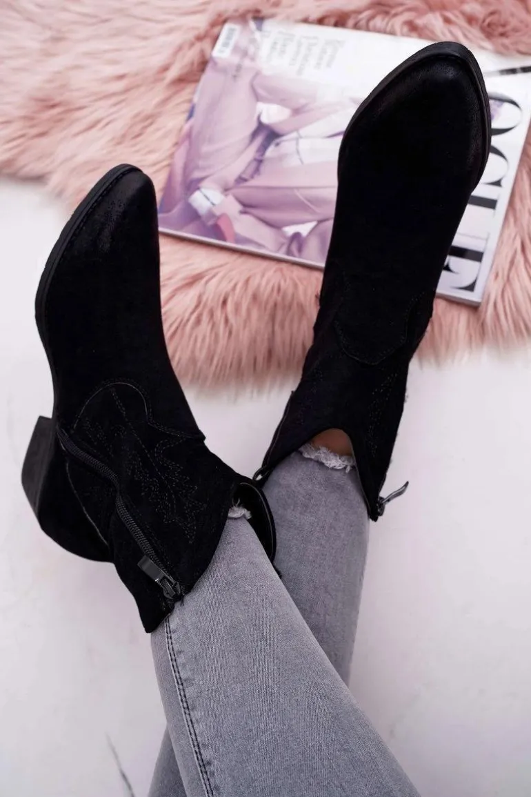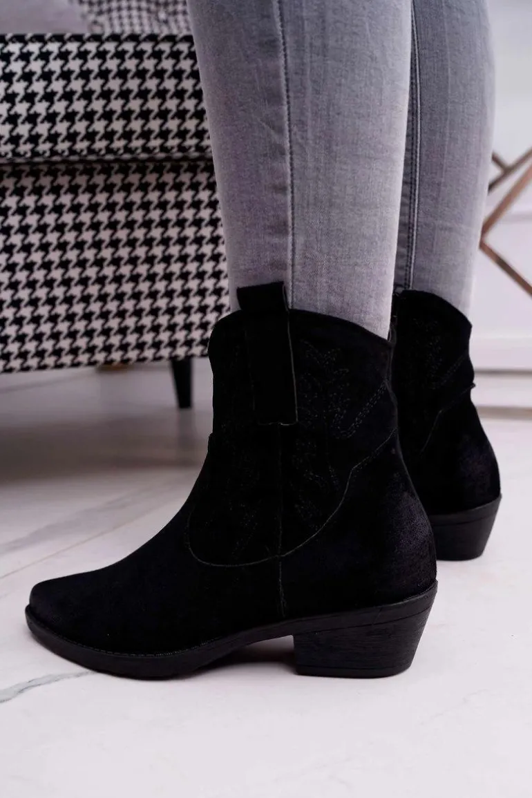 Damskie Botki Kowbojki Zamszowe Czarne Ferders