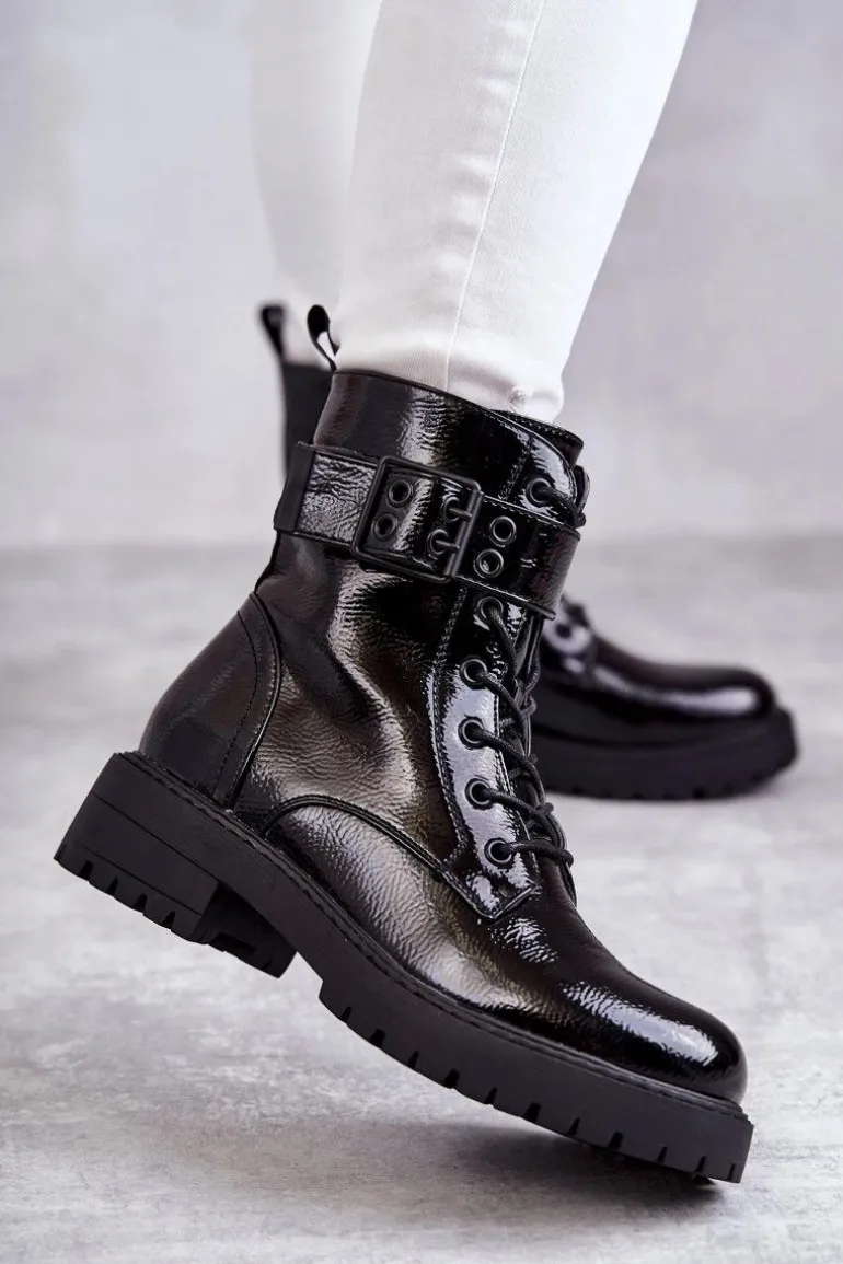 Modne botki damskie zostały wykonane z eko skóry. Posiadają suwak na boku cholewki, sznurowanie oraz klamrę z regulowanym paskiem. W środku znajduje się ocieplenie w postaci koca obuwniczego. Buty dodatkowo posiadają usztywniany zapiętek. Świetny model na jesienne, chłodne dni! Koniecznie sprawdź także pozostałe modele botków dostępne na naszej stronie! Przy wyborze rozmiaru prosimy sugerować się tabelą rozmiarów.