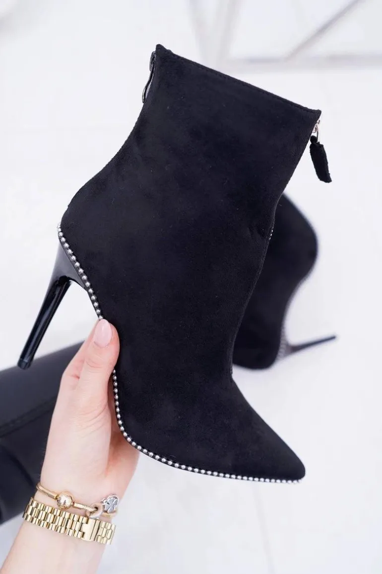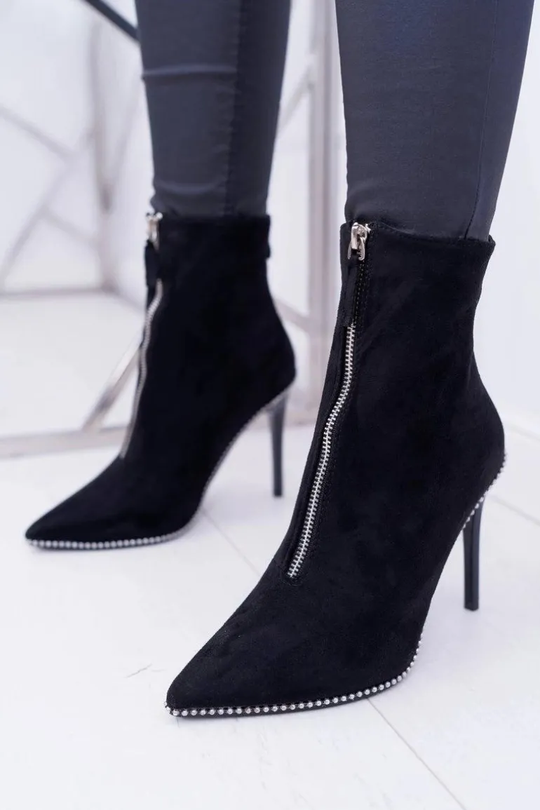 Damskie Botki Na Obcasie Lu Boo Dwa Suwaki Zamszowe Czarne Suzy