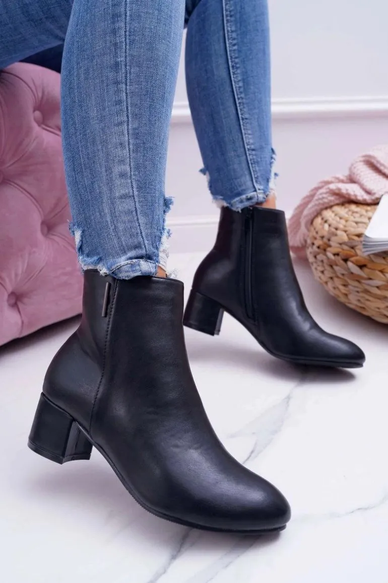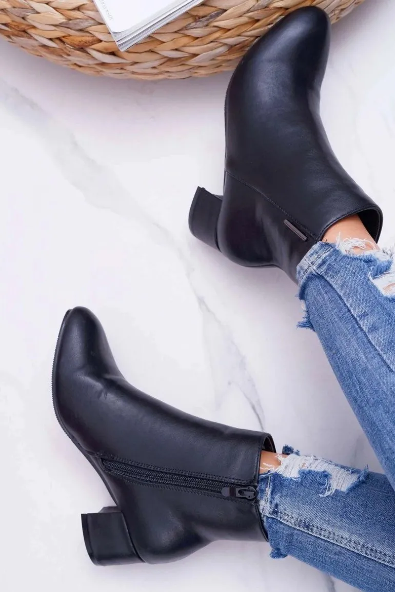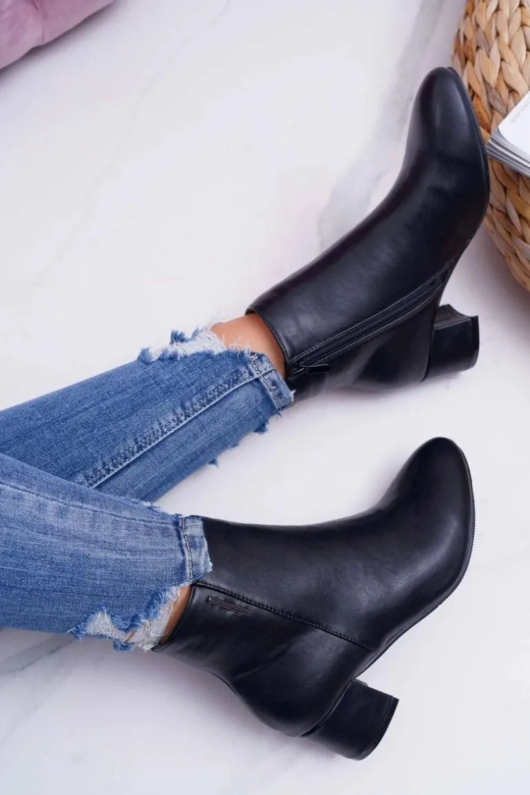 Damskie Botki Na Obcasie Ocieplane Czarne Fiorelli