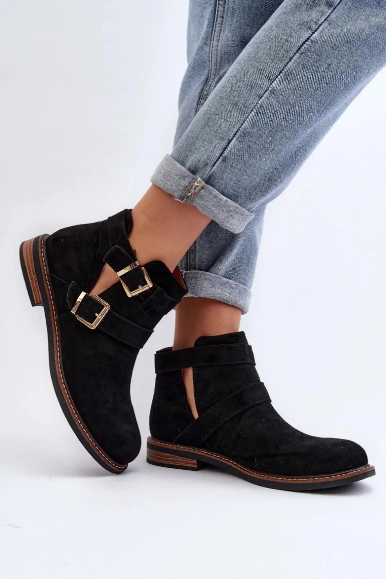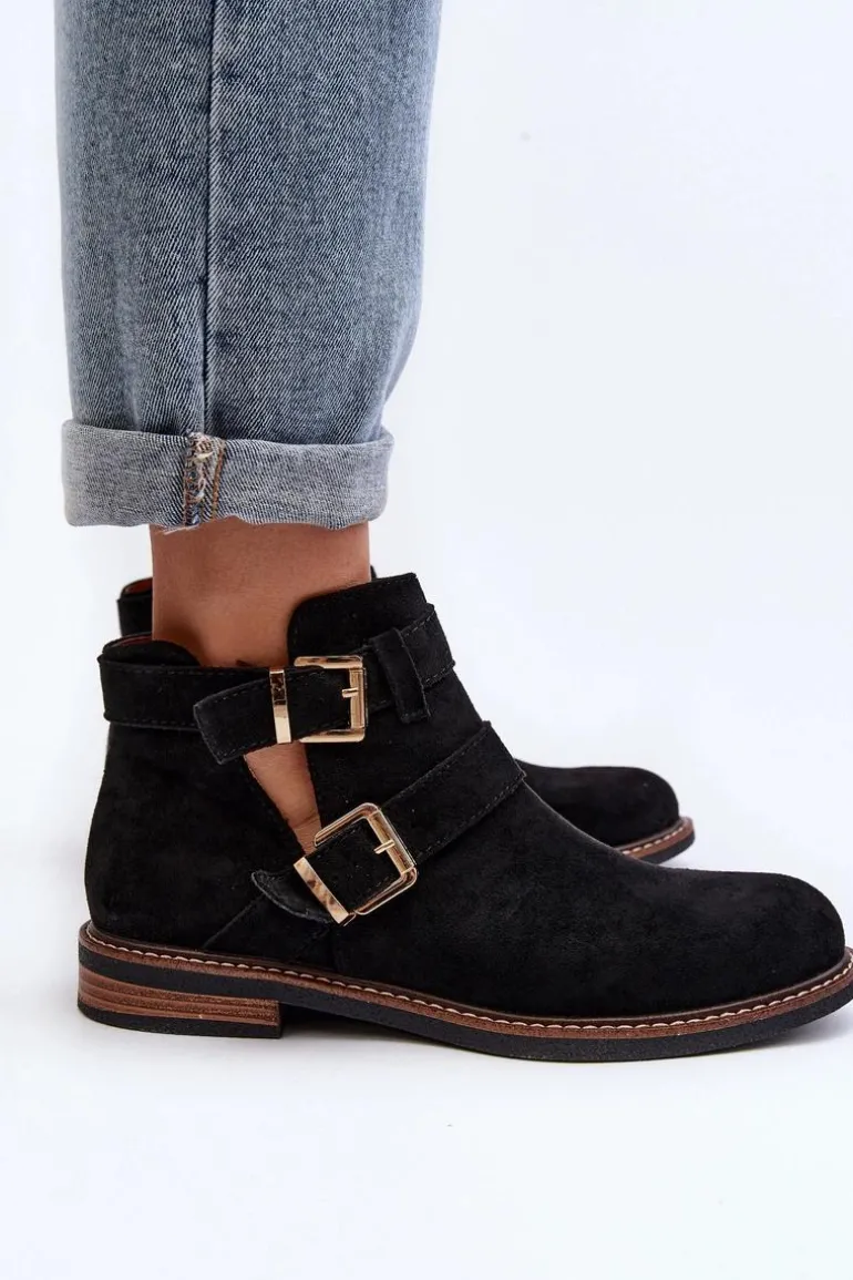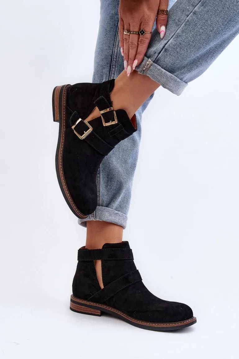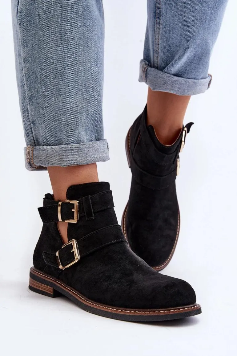 Damskie Botki Na Płaskim Obcasie Z Paskami Czarne Melviana