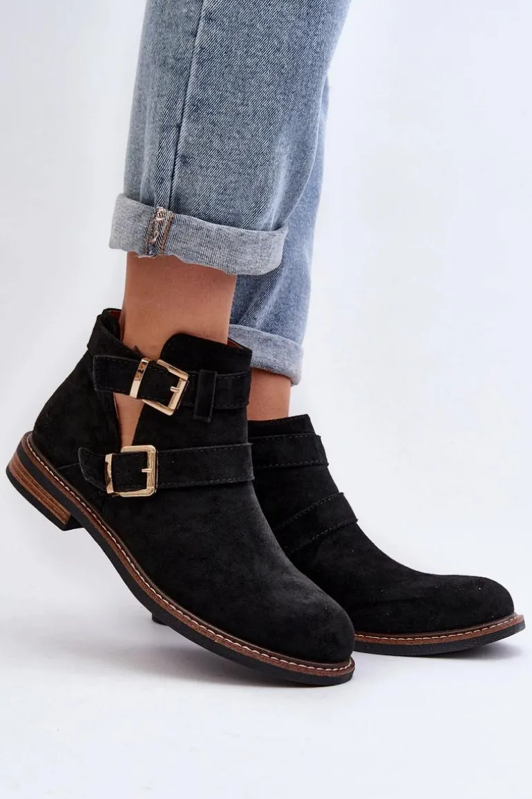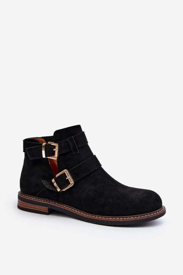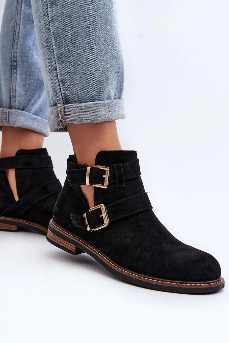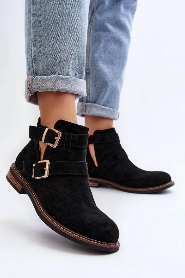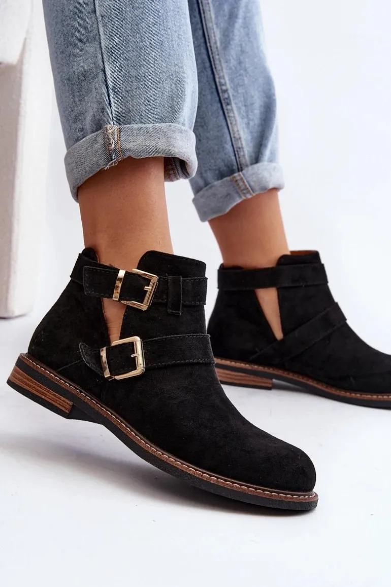 Damskie Botki Na Płaskim Obcasie Z Paskami Czarne Melviana