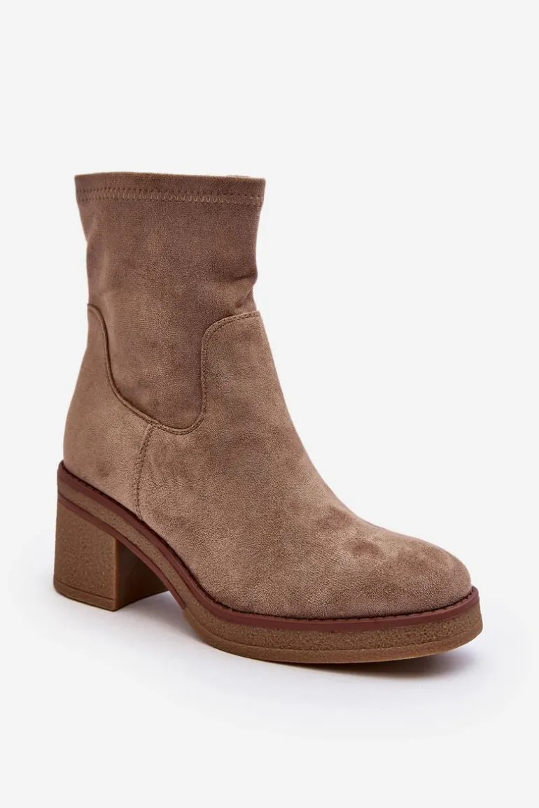 Klasyczne botki damskie, które dopasujesz do wielu jesienno-zimowych stylizacji! Wykonane z eko zamszu. Osadzone na obcasie w postaci słupka. Noski zaokrąglone. Środek częściowo ocieplony kocem obuwniczym. Koniecznie musisz je mieć! Przy wyborze rozmiaru prosimy sugerować się tabelą rozmiarów.