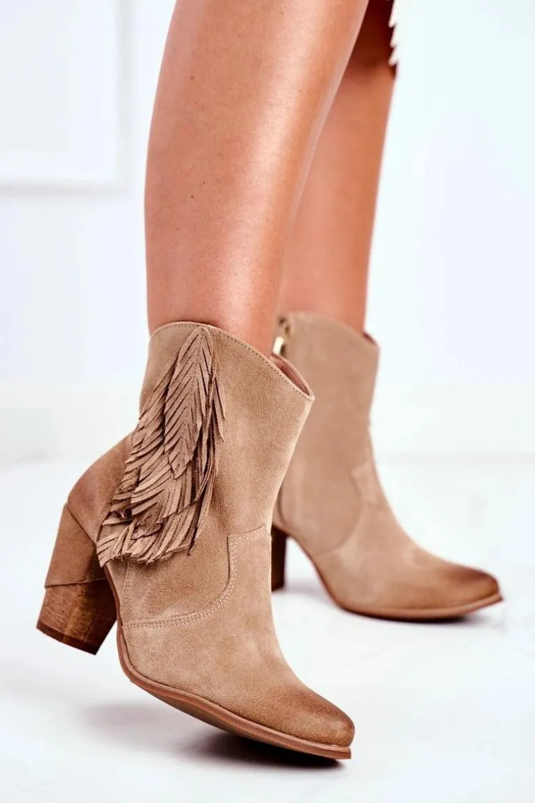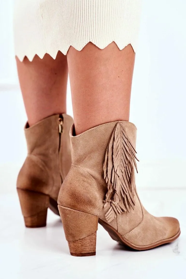 Damskie Botki Na Słupku Beżowe Skórzane Quintana