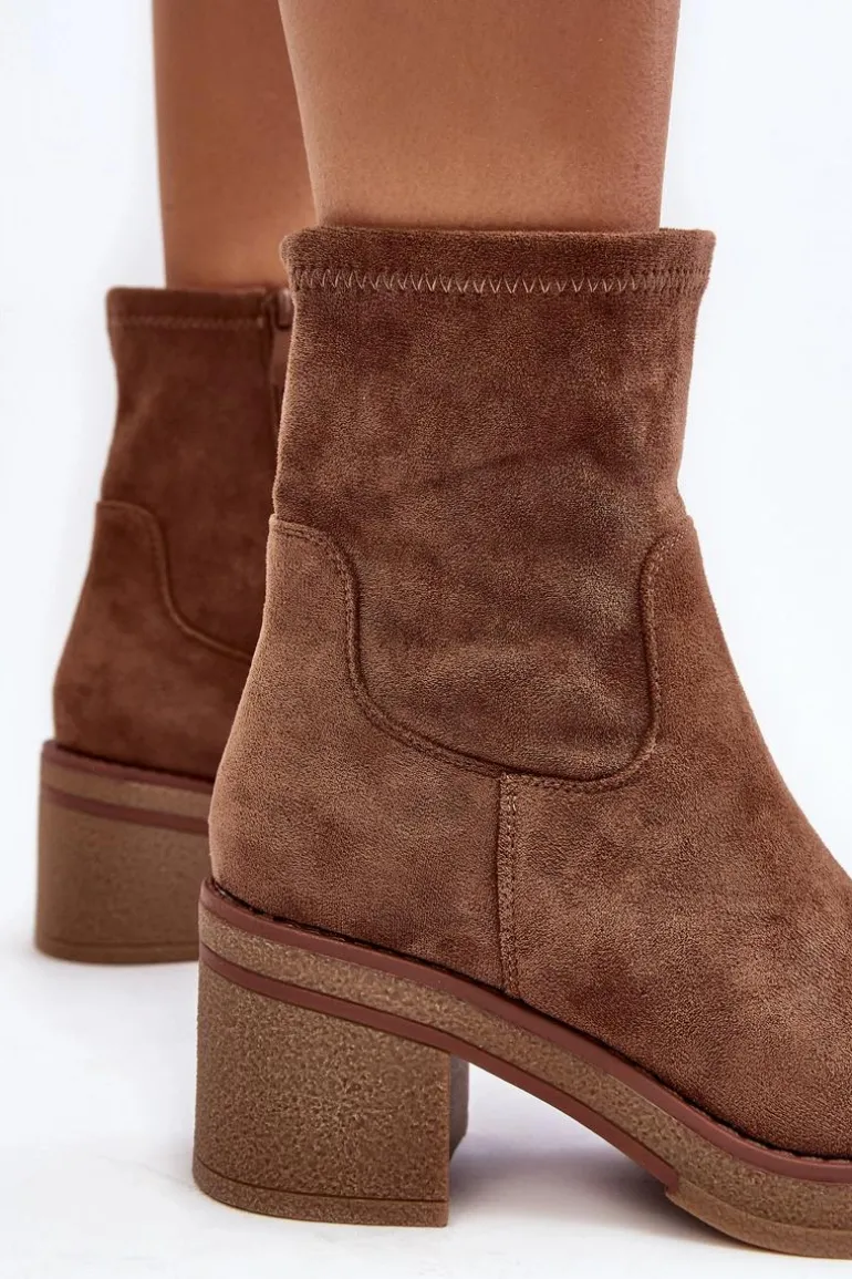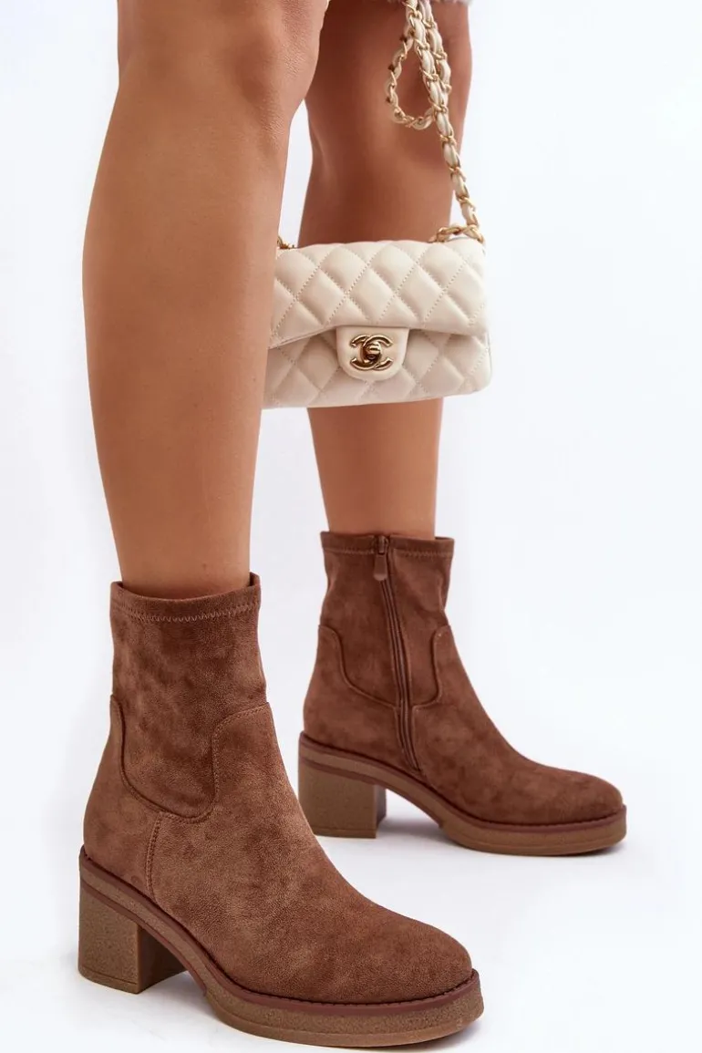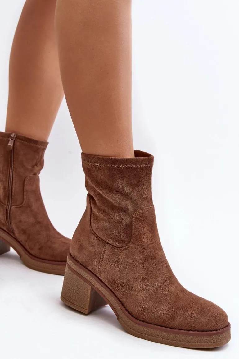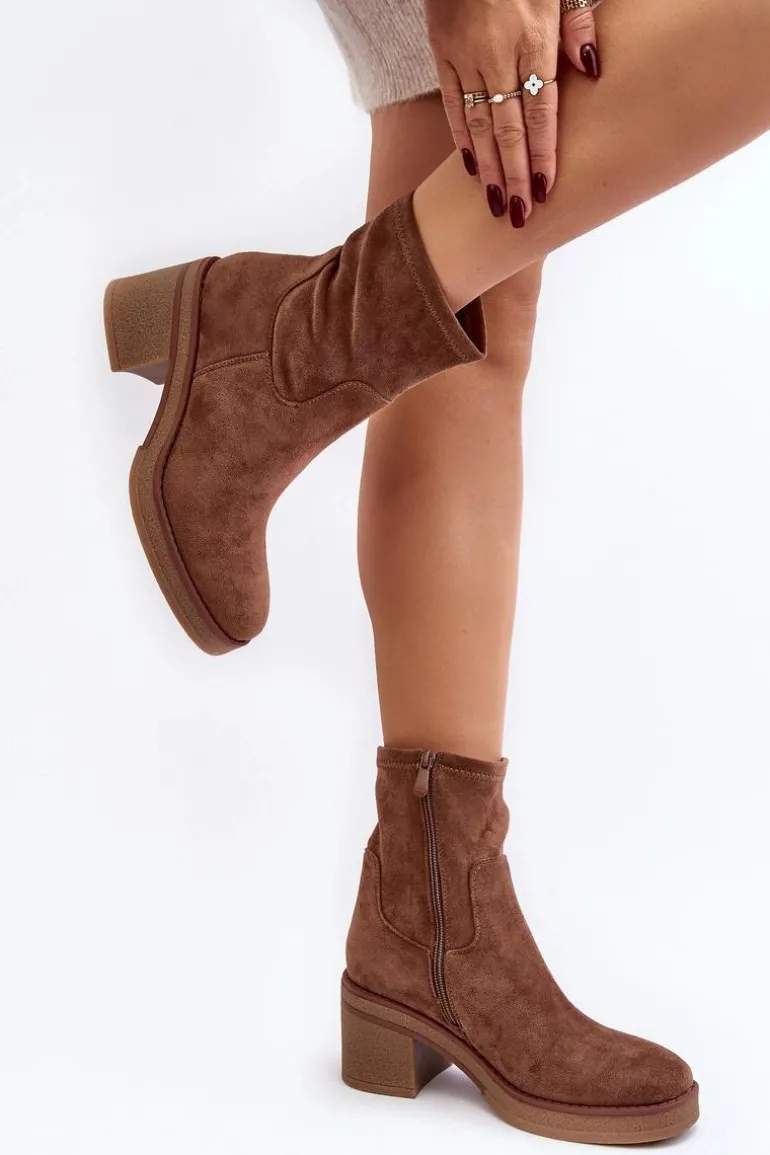 Klasyczne botki damskie, które dopasujesz do wielu jesienno-zimowych stylizacji! Wykonane z eko zamszu. Osadzone na obcasie w postaci słupka. Noski zaokrąglone. Środek częściowo ocieplony kocem obuwniczym. Koniecznie musisz je mieć! Przy wyborze rozmiaru prosimy sugerować się tabelą rozmiarów.