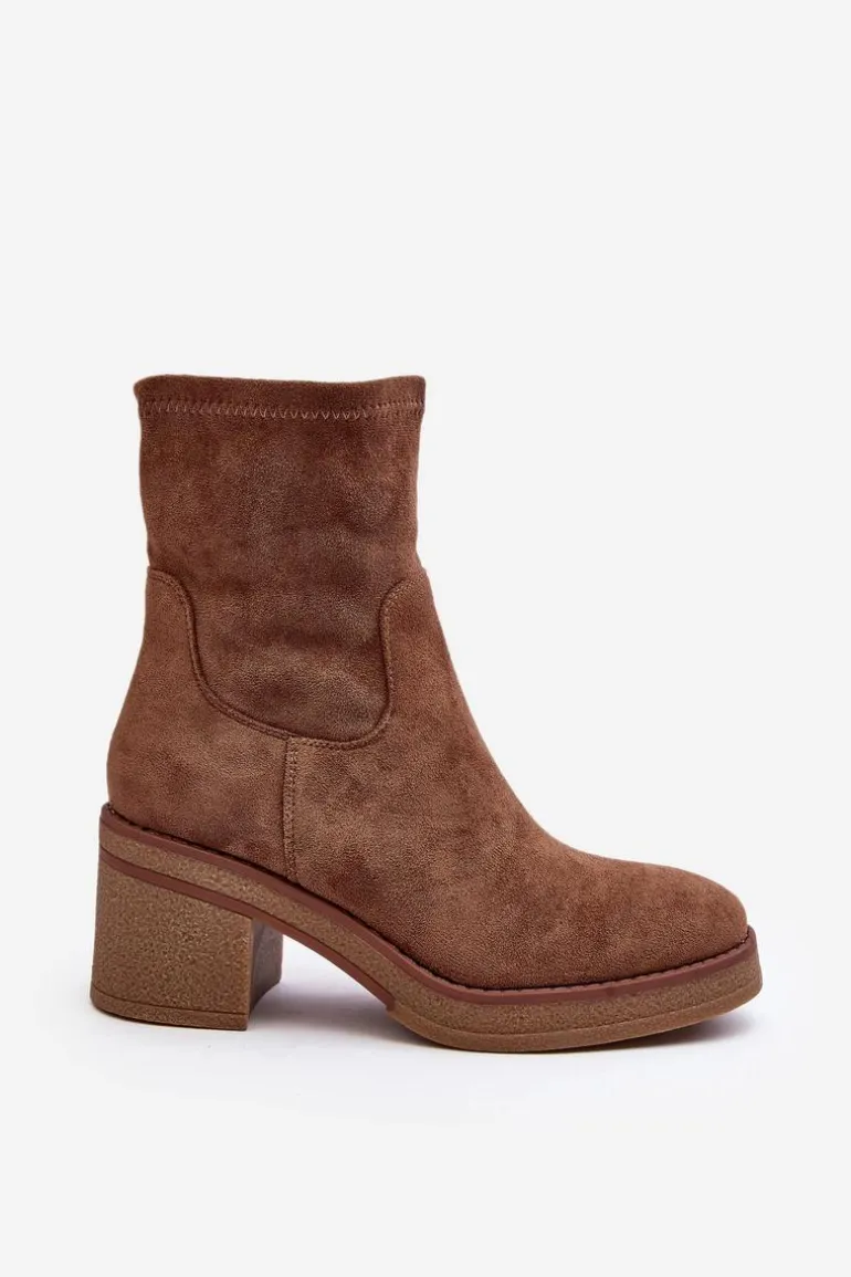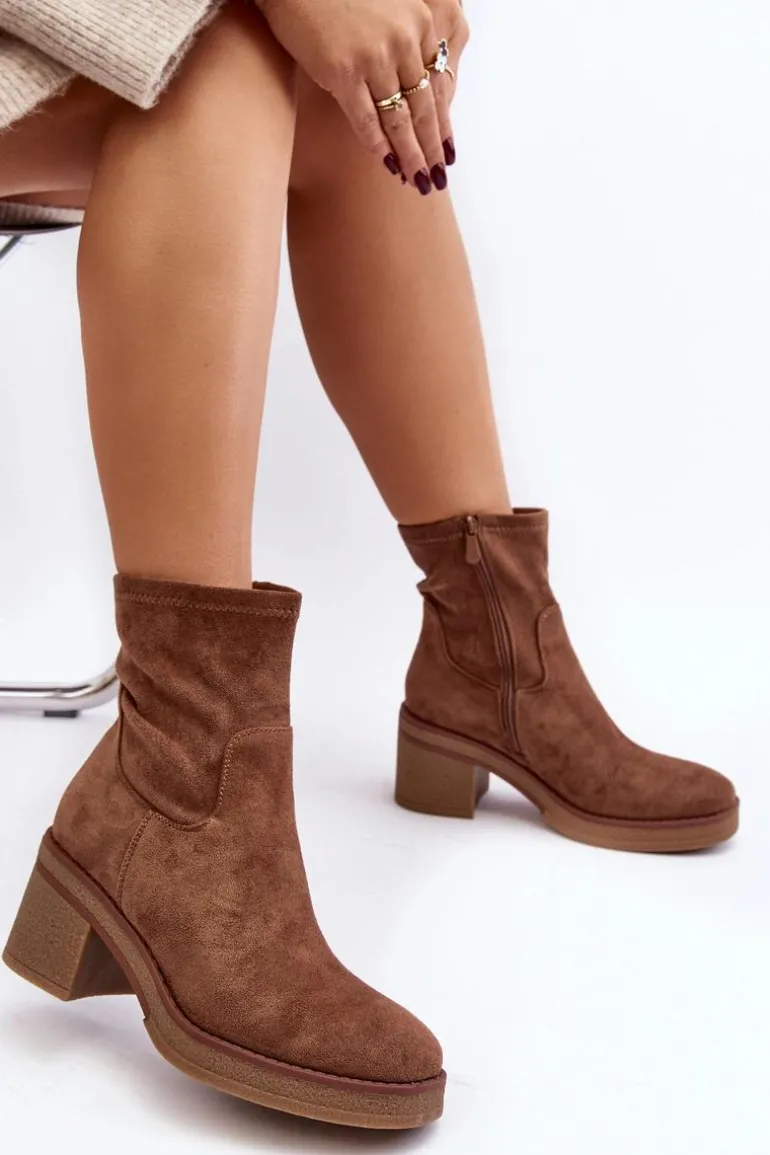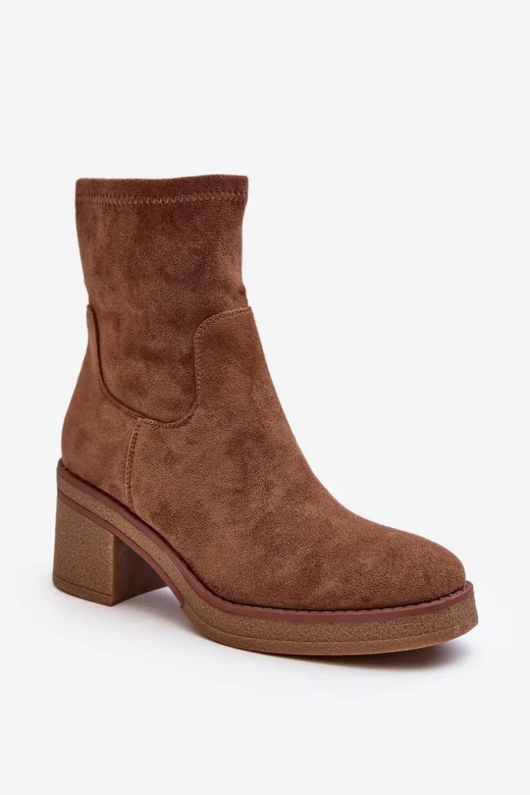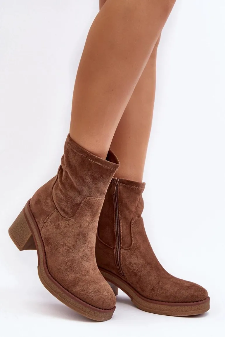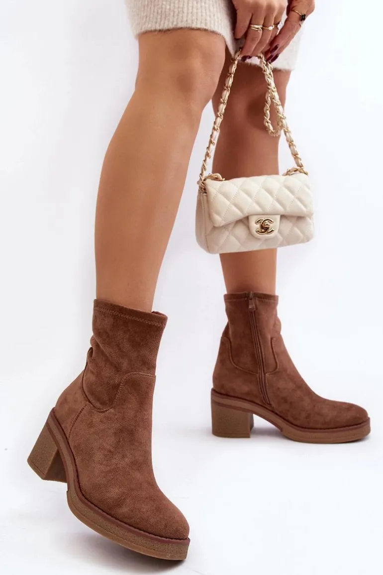 Klasyczne botki damskie, które dopasujesz do wielu jesienno-zimowych stylizacji! Wykonane z eko zamszu. Osadzone na obcasie w postaci słupka. Noski zaokrąglone. Środek częściowo ocieplony kocem obuwniczym. Koniecznie musisz je mieć! Przy wyborze rozmiaru prosimy sugerować się tabelą rozmiarów.