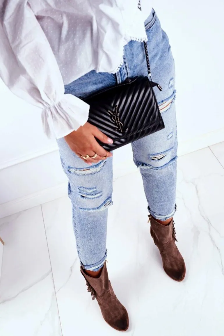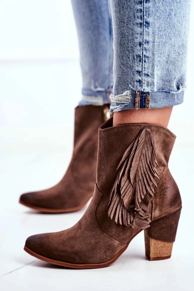 Lubisz ekskluzywne kolekcje butów w najwyższej jakości wykonania i użytych materiałów? Dobrze trafiłaś! To właśnie buty z tej kategorii! Botki zostały wykonane w całości ze skóry naturalnej, która w niezwykle delikatny sposób otuli Twoją stopę luksusem. Obuwie zostało ozdobione frędzelkami, tworzącymi motyw trzech nakładających się na siebie liści po zewnętrznej stronie kostki. Wszelkie przeszycia zostały wykonane z najwyższym kunsztem i dbałością o szczegóły. Szeroki obcas w formie słupka pozwoli Ci na stabilne poruszanie się nawet po śliskich powierzchniach.Ta zgrabna forma idealnie wysmukli Twoją nogę, a Ty poczujesz się jeszcze piękniejsza! O ile to możliwe:) Przy wyborze rozmiaru prosimy sugerować się tabelą rozmiarów.