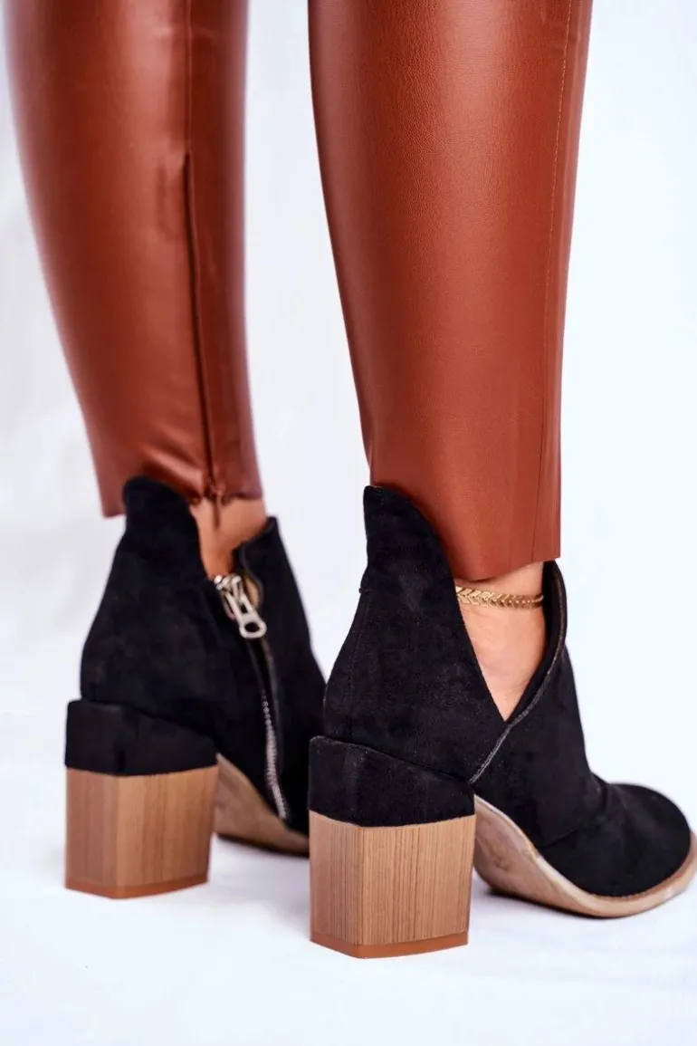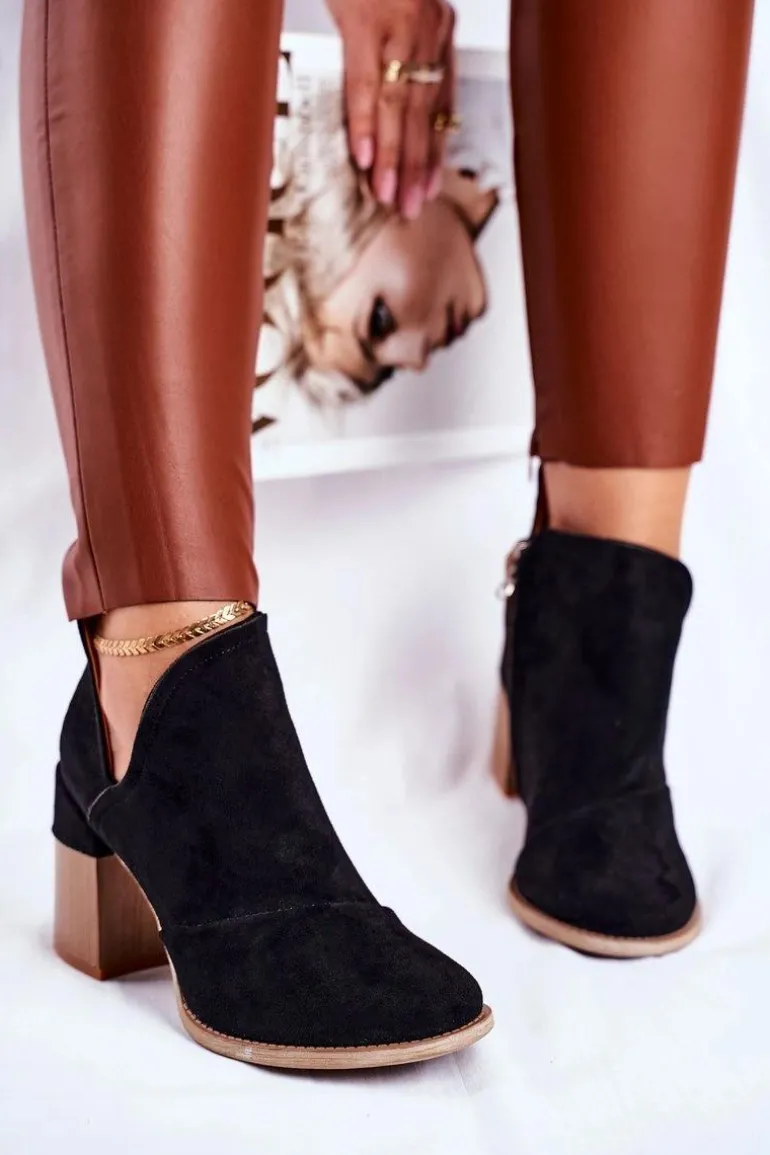 Damskie Botki Na Słupku Czarne Wycięte Meliori