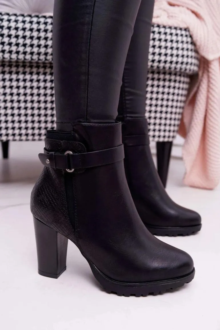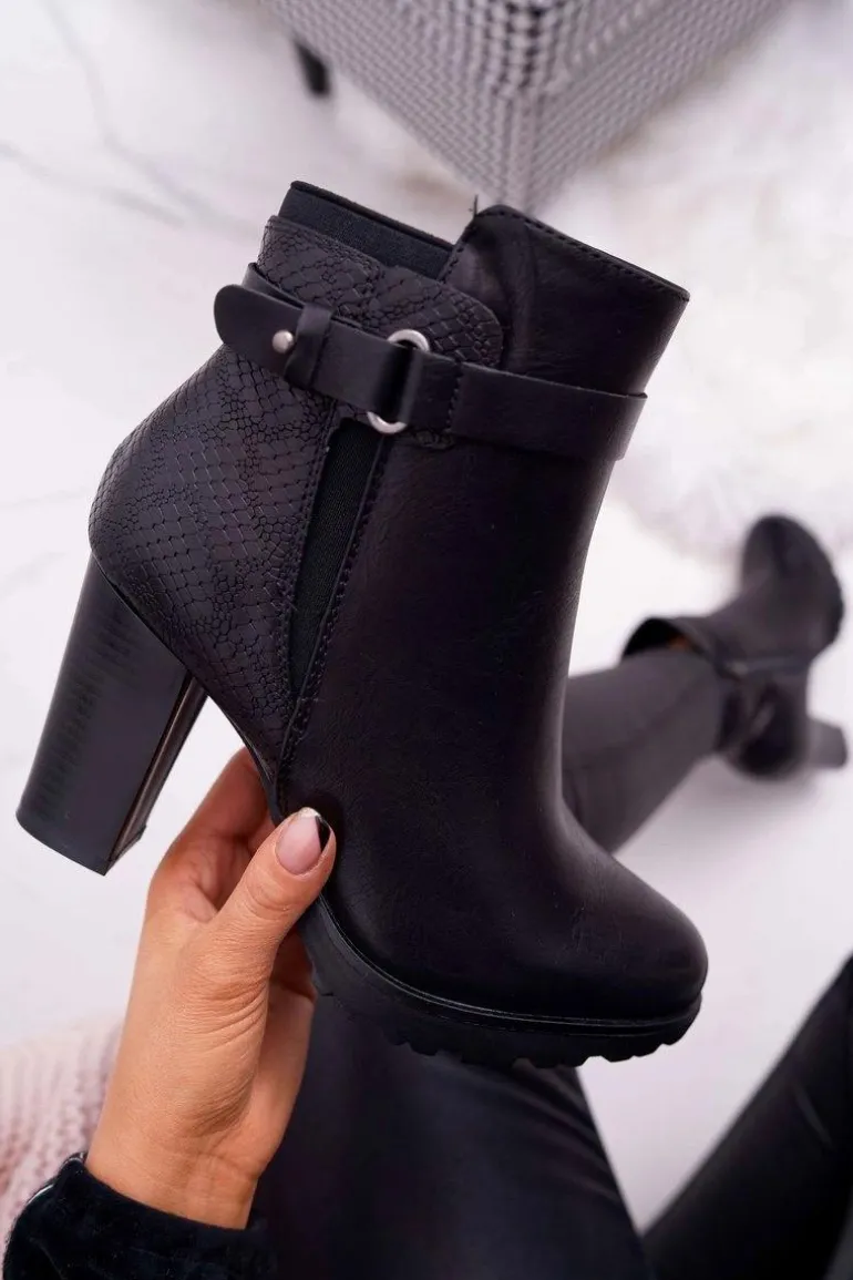 Damskie Botki Na Słupku Ocieplane Czarne Devin