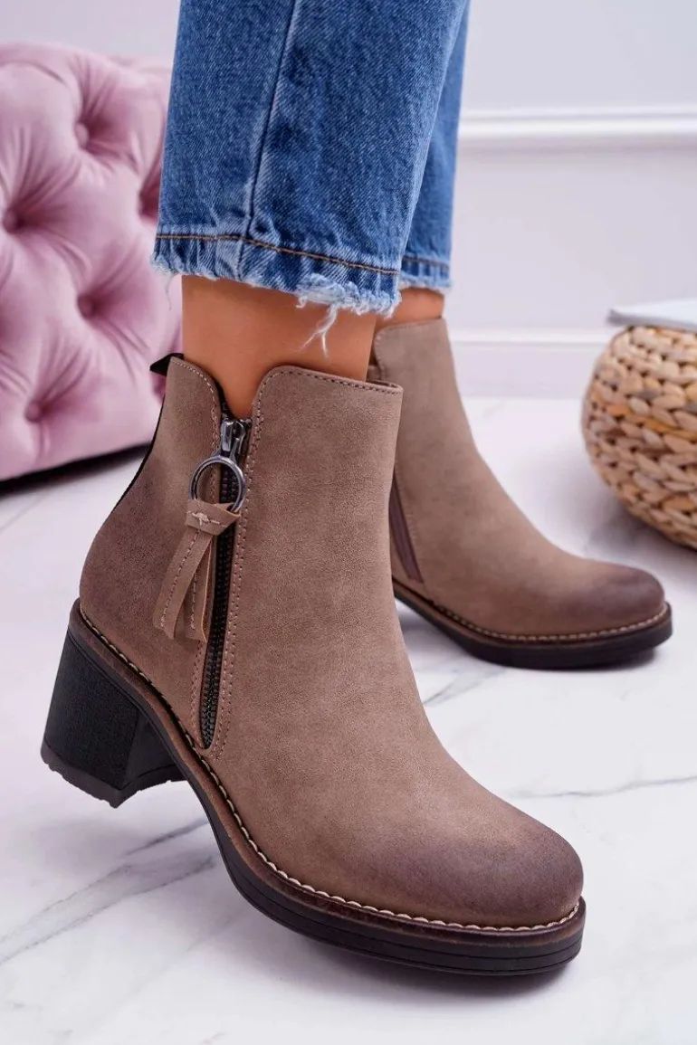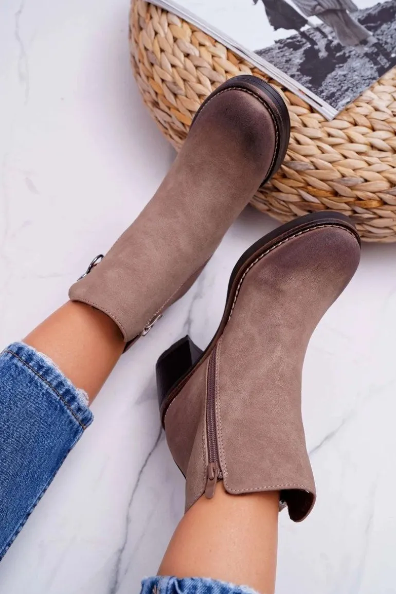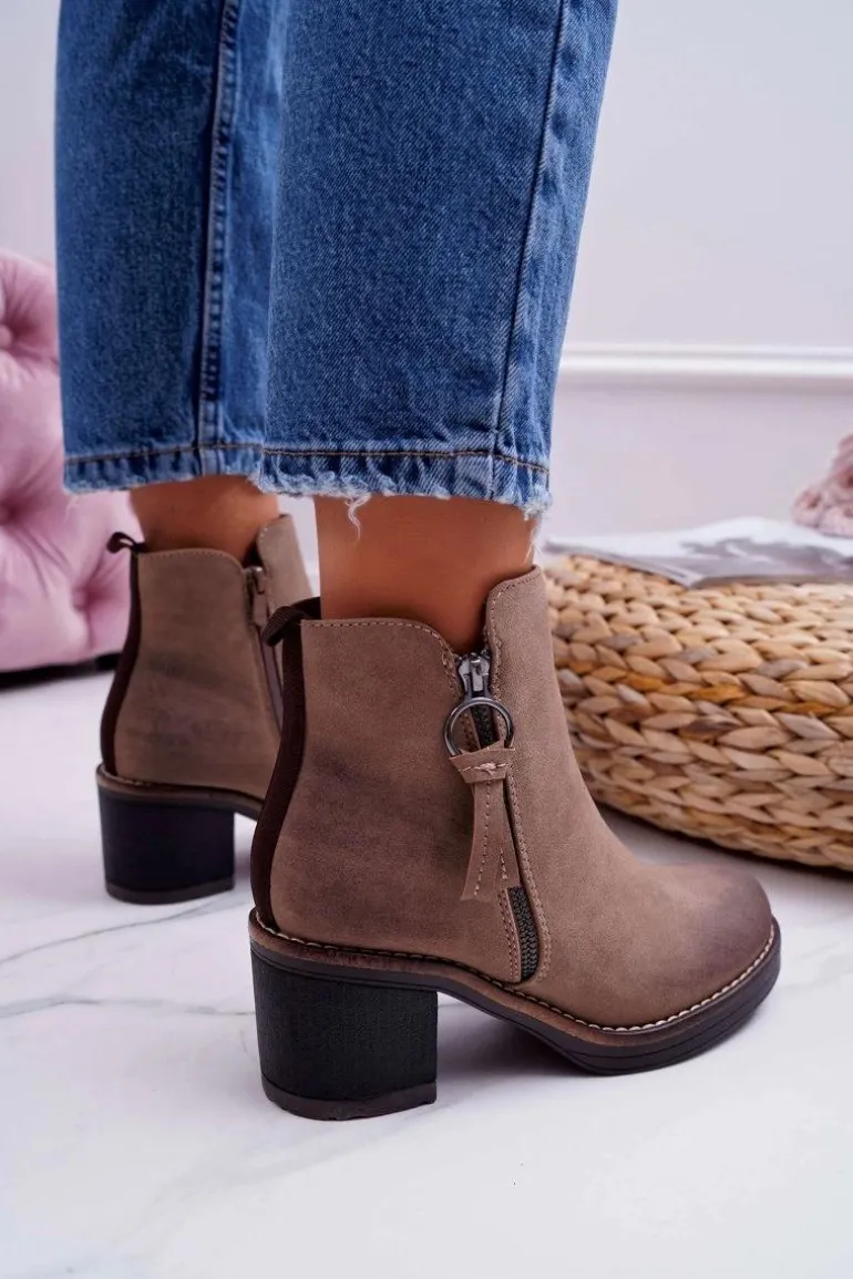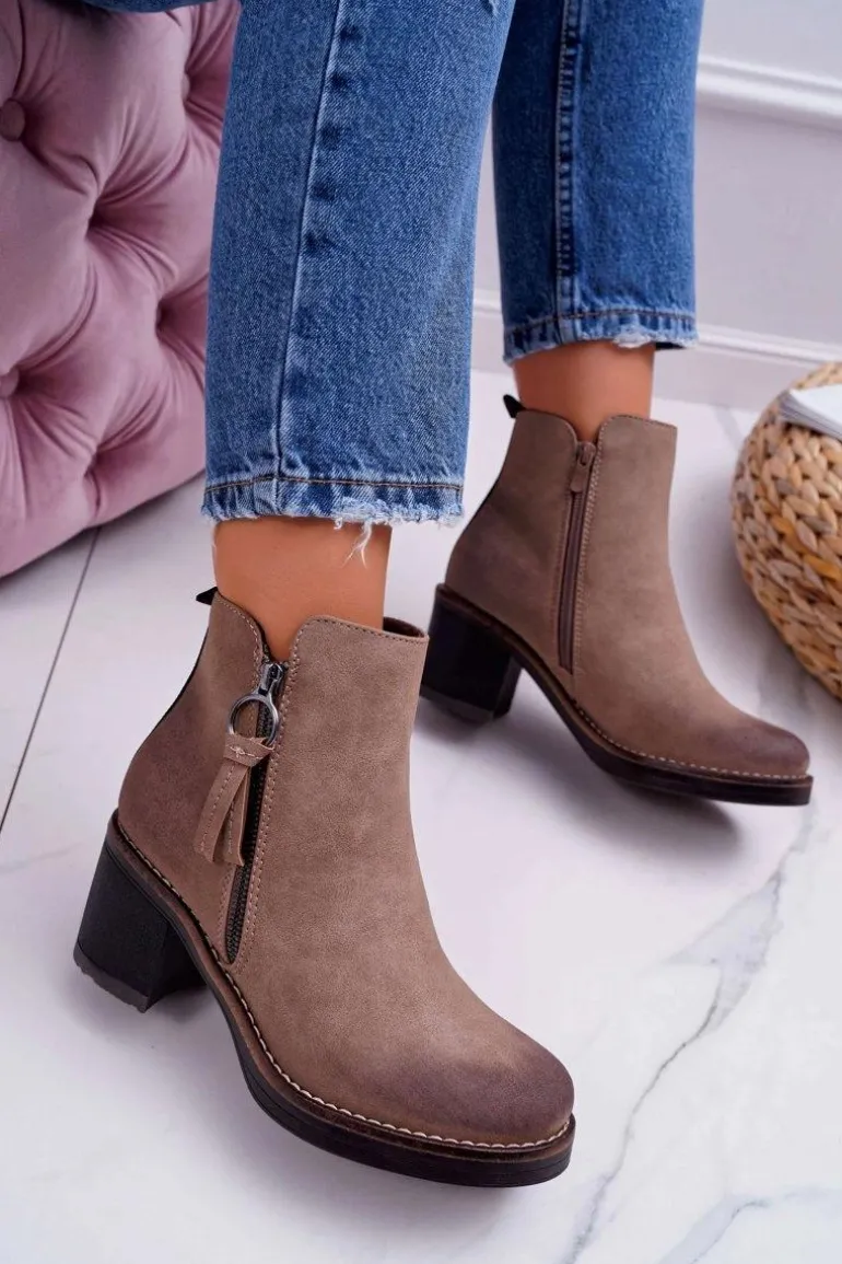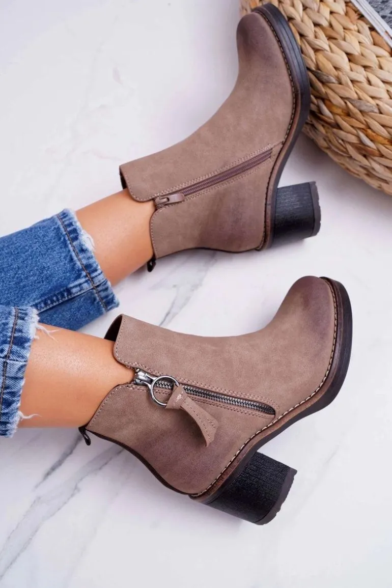 Damskie Botki Na Słupku Ocieplane Filcem Beżowe Delia