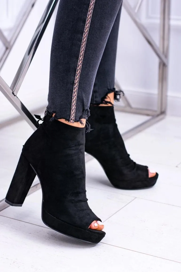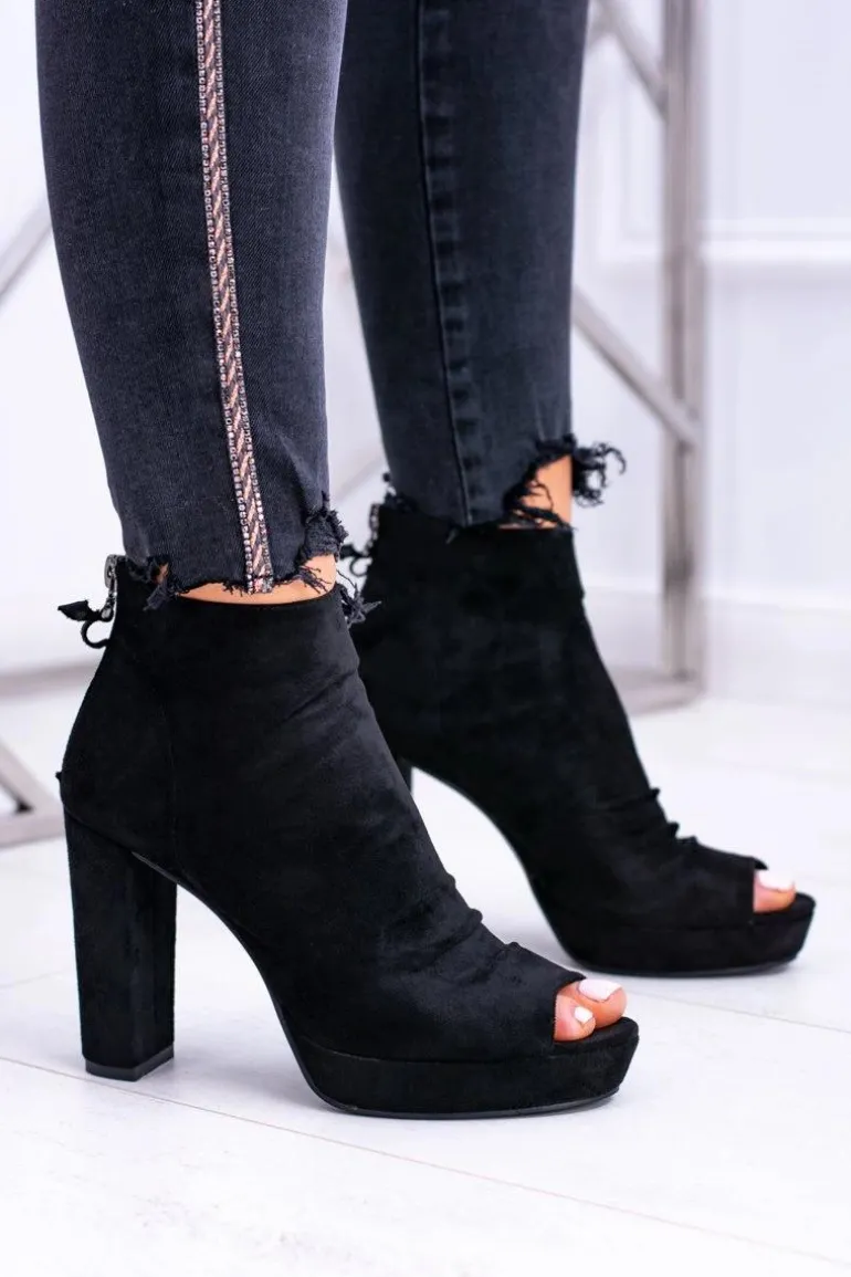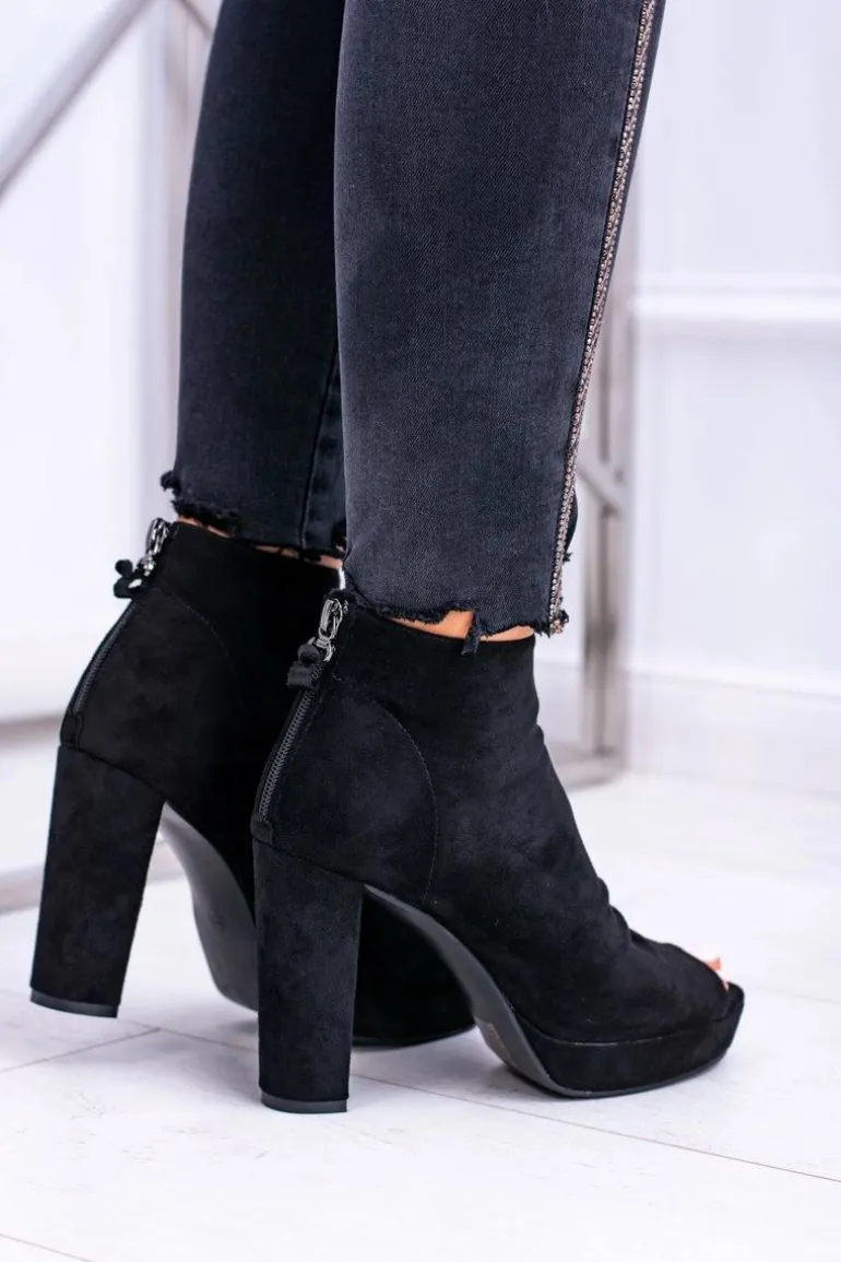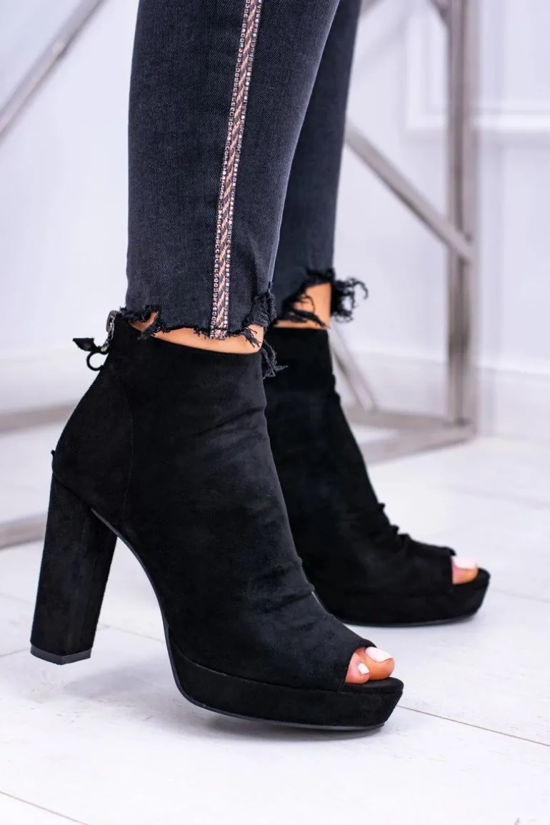 Damskie Botki Na Słupku Odkryte Palce Czarne Temira