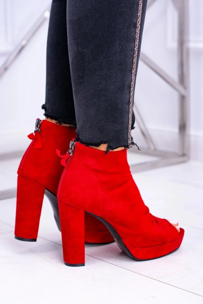 Damskie Botki Na Słupku Odkryte Palce Czerwone Temira