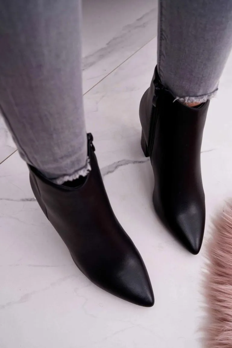 Damskie Botki Na Słupku W Szpic Czarne Felino