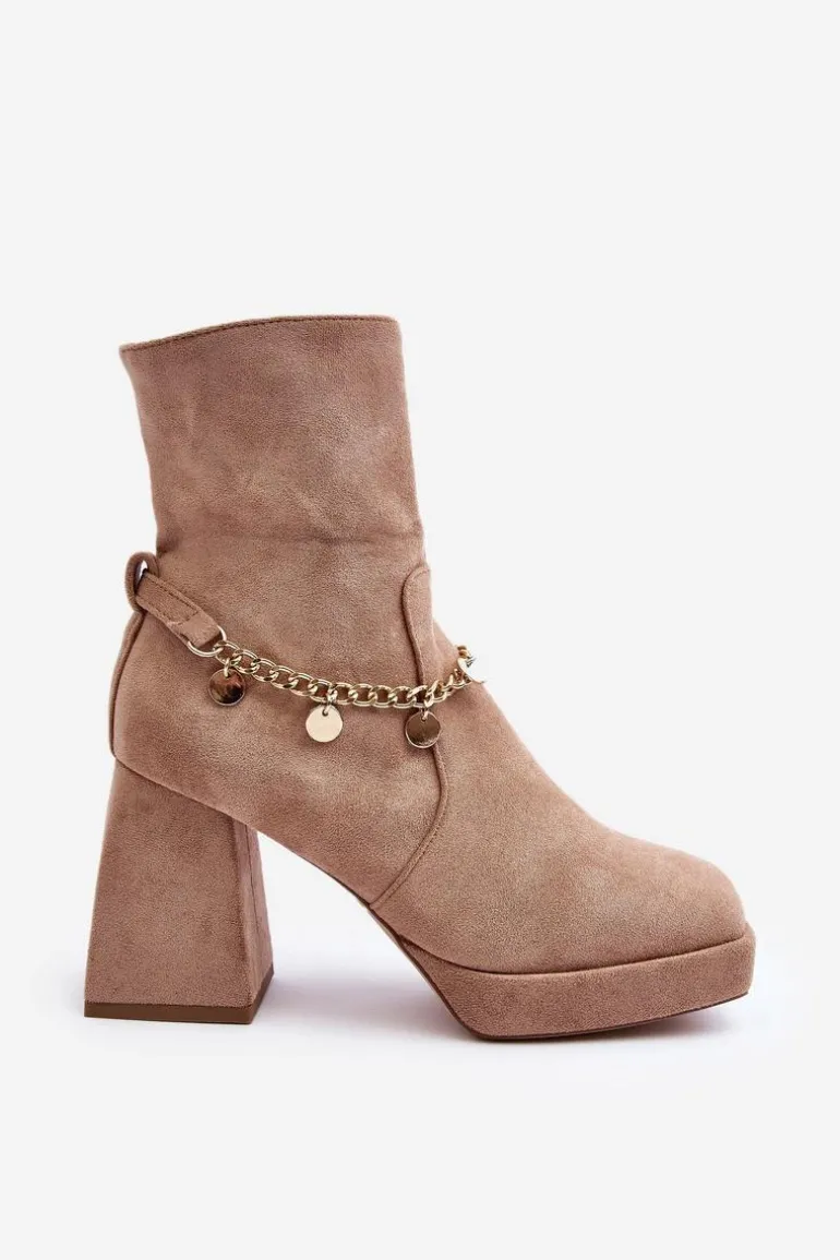 Damskie Botki Na Słupku Z Łańcuszkiem Beżowe Tiselo