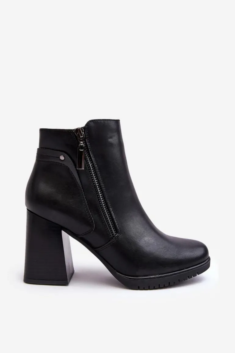 Damskie Botki Na Słupku Z Suwakami Czarne Ryelle