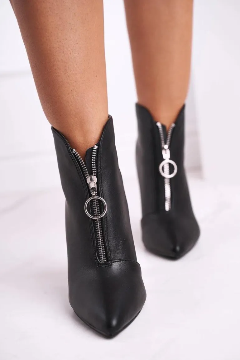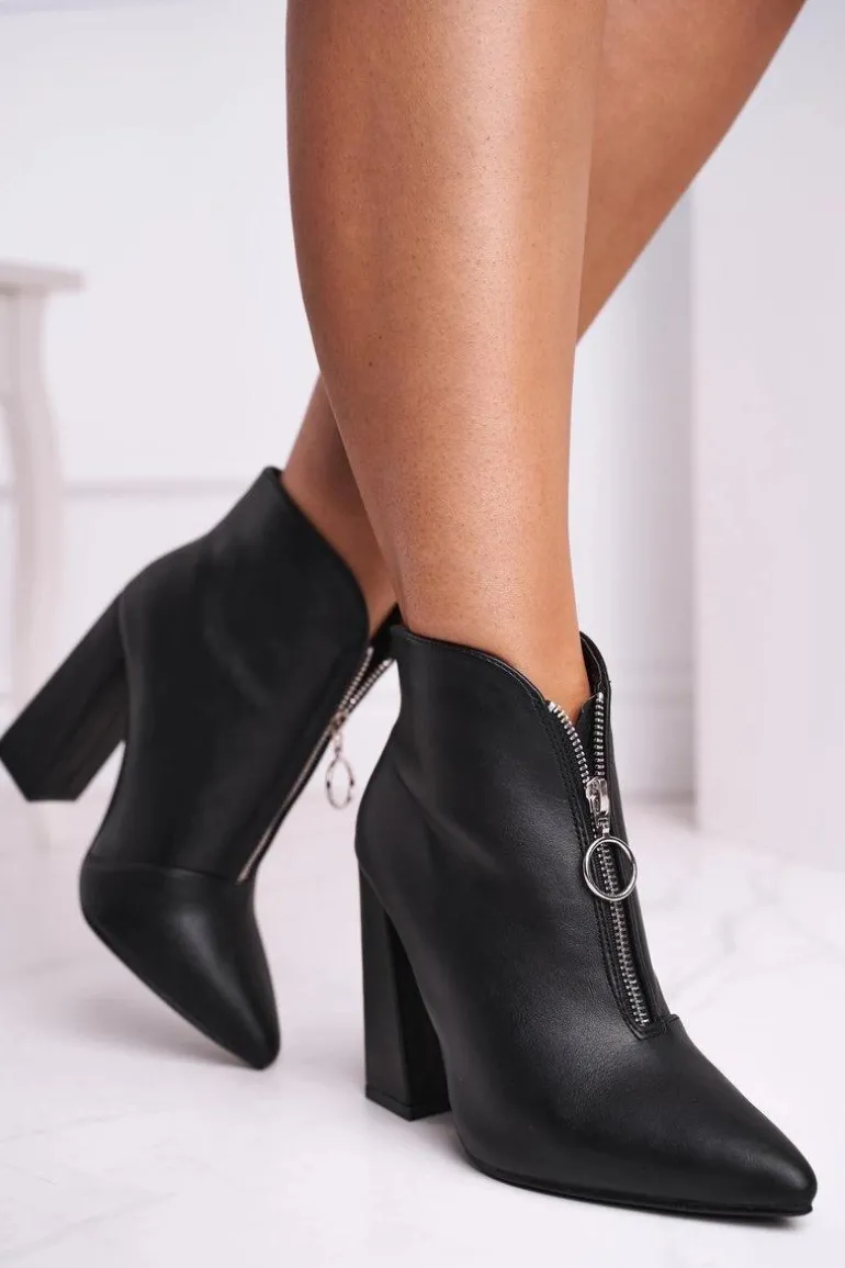 Damskie Botki Na Słupku Zamek z Przodu Czarne Save Me