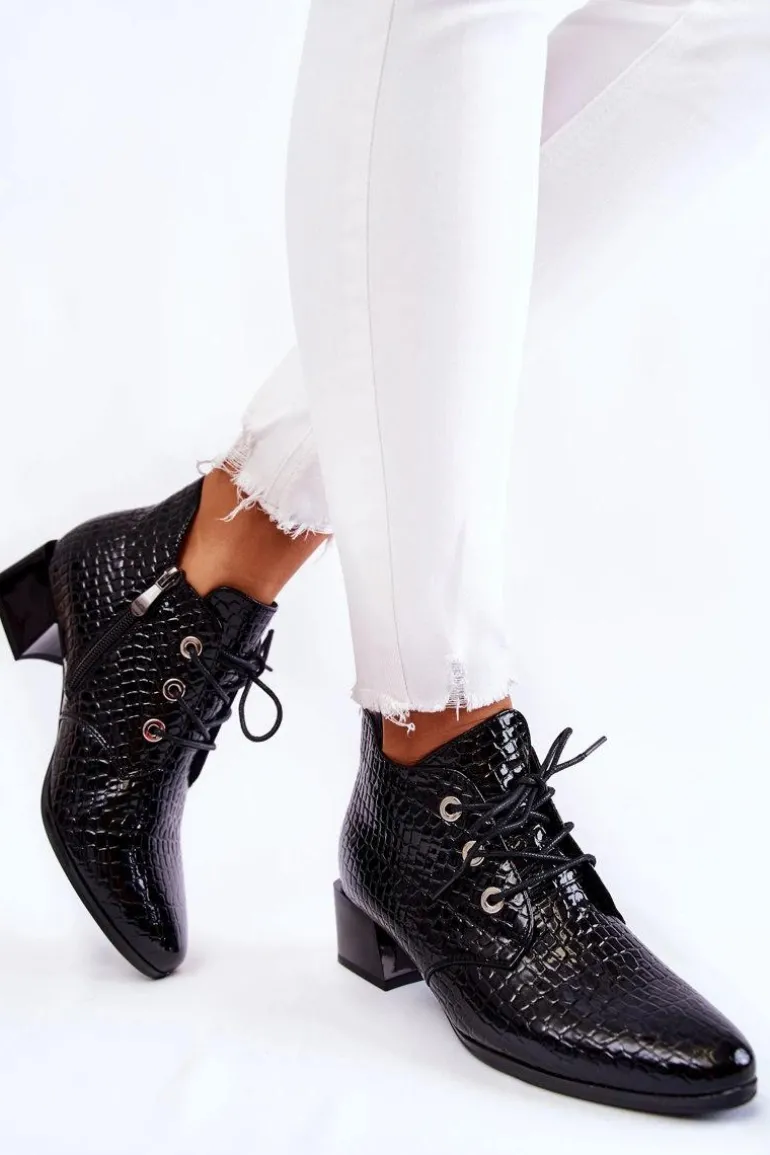 Damskie Botki Na Suwak Wzór Krokodyl Czarne Farrah