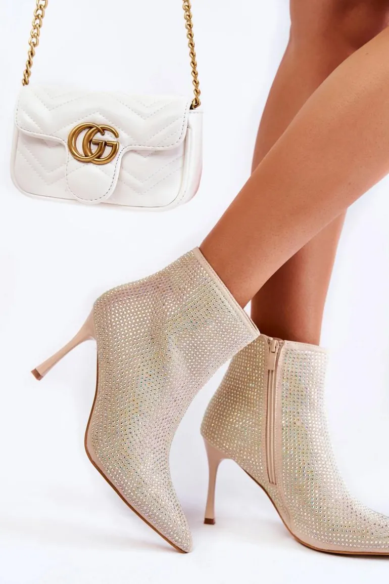 Cudowne botki zostały wykonane z eko zamszu. Model osadzony na obcasie w postaci szpilki, z noskiem w szpic świetnie wysmukli nogi. Cholewka została ozdobiona mieniącymi się dżetami. Botki są zapinane z boku na suwak. Zapiętek w tych botkach jest usztywniany. Model ten świetnie sprawdzi się w wielu stylizacjach! Te botki koniecznie musisz mieć w swojej szafie! Przy wyborze rozmiaru prosimy sugerować się tabelą rozmiarów.