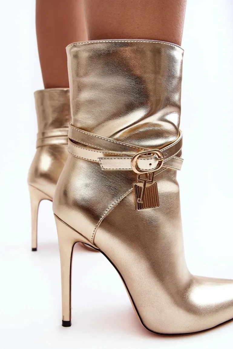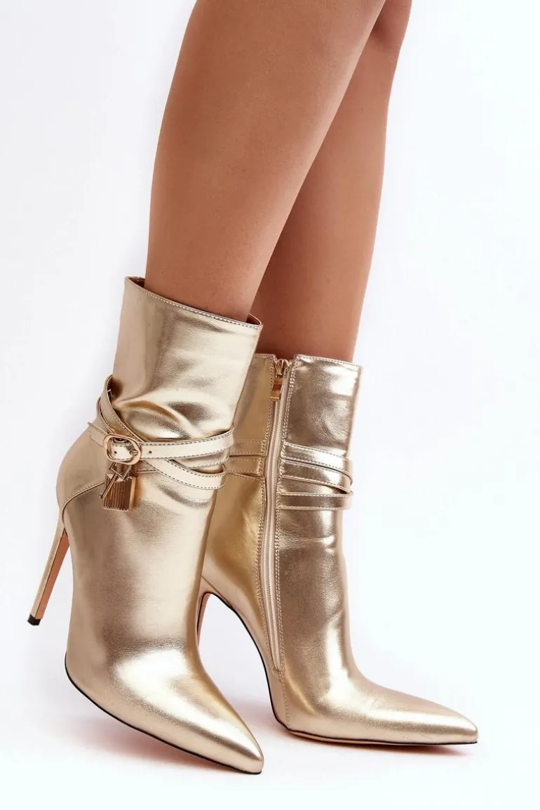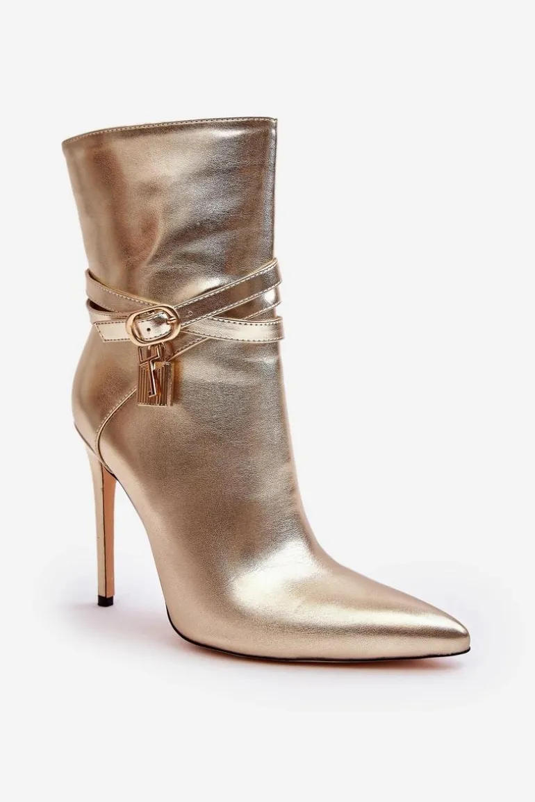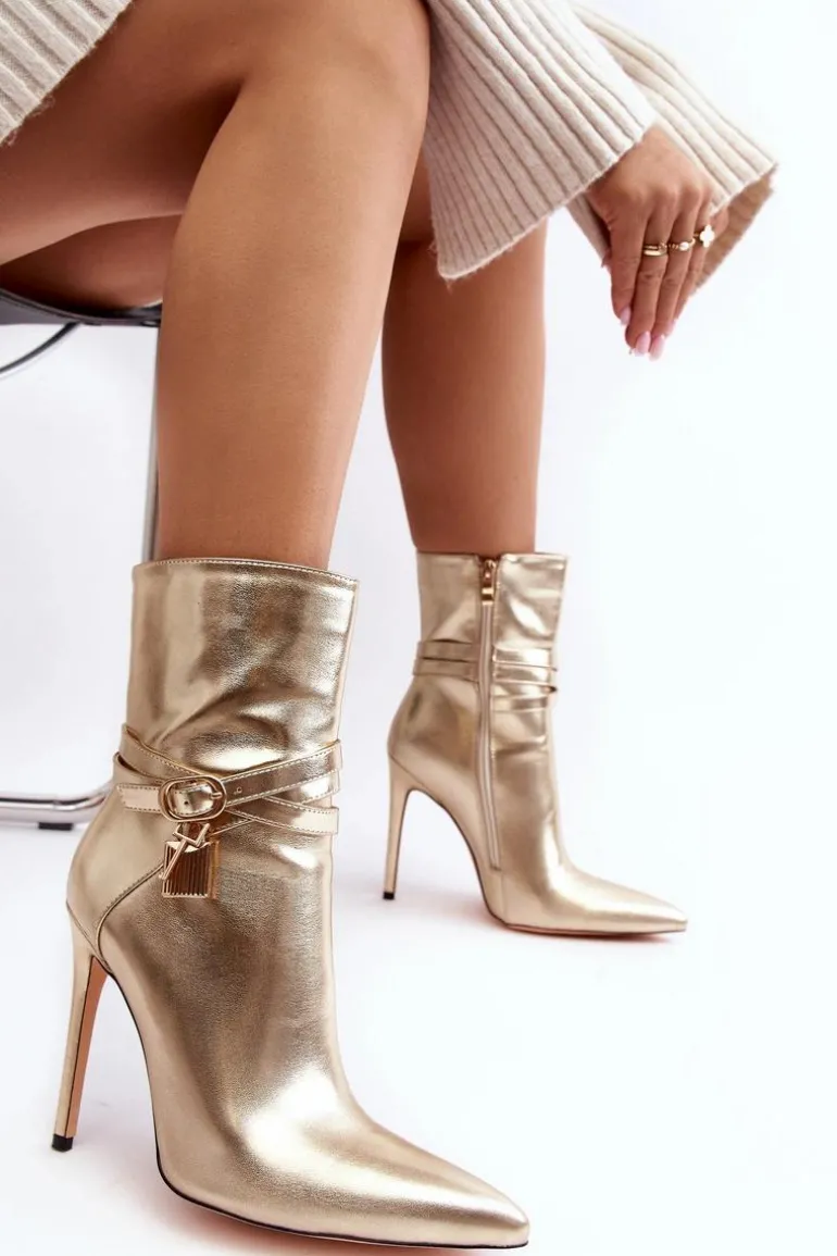 Damskie Botki Na Szpilce Z Paskami Złote Casulle
