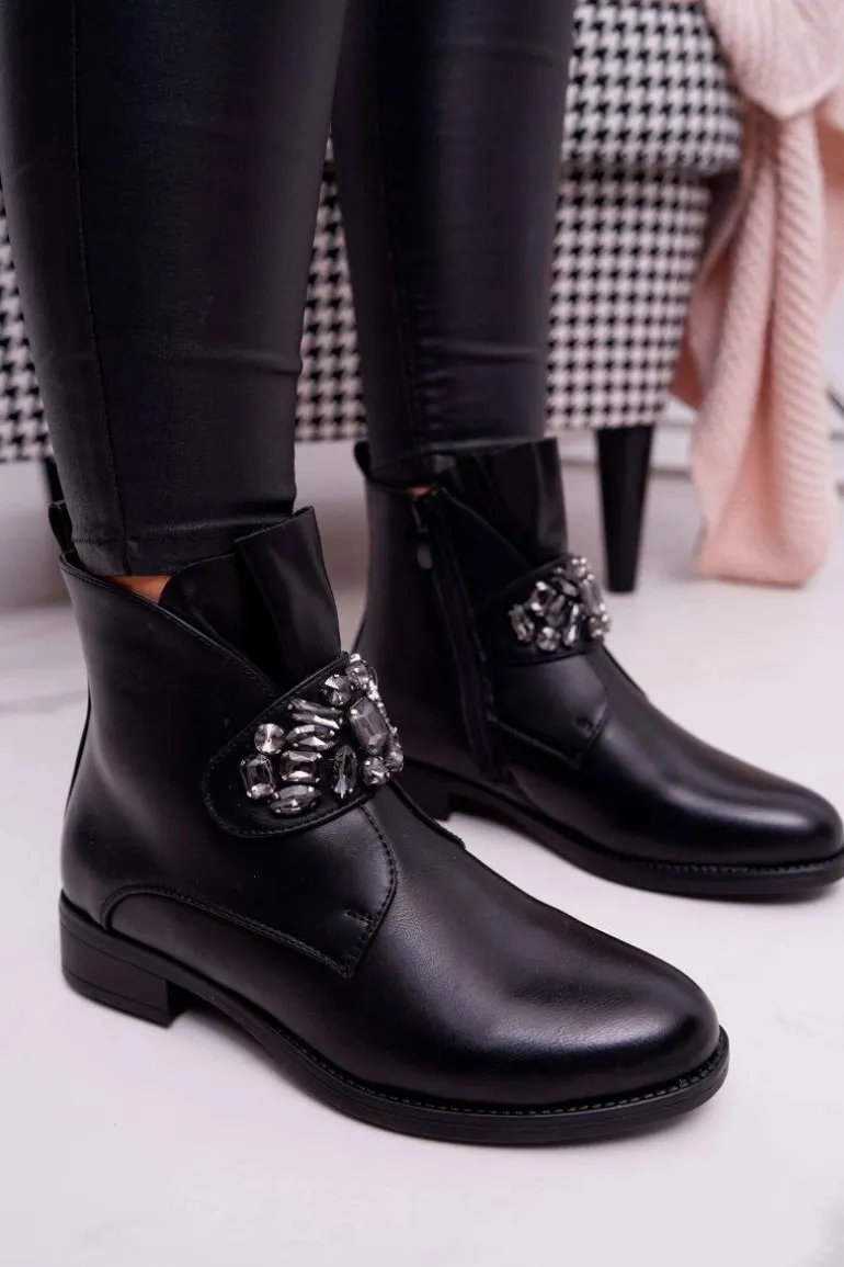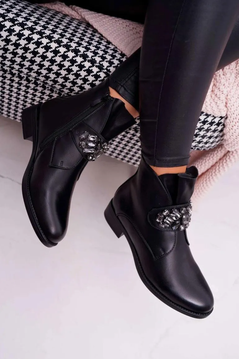 Damskie Botki Ocieplane Kryształki Czarne Somingo