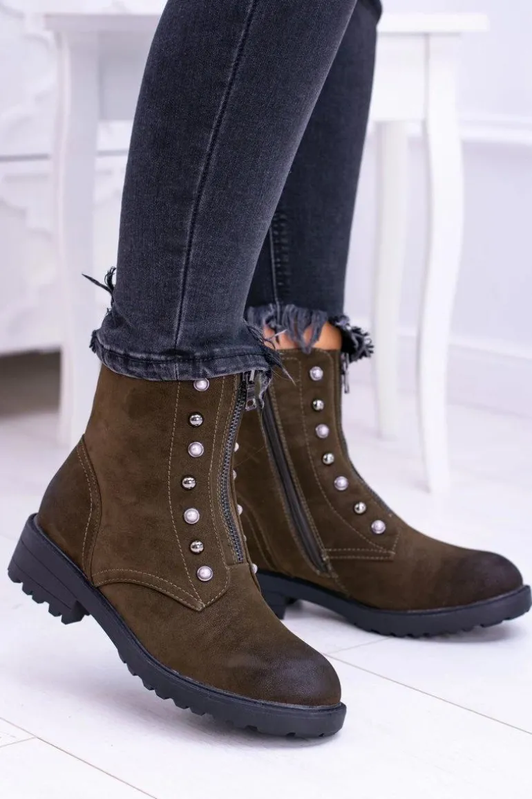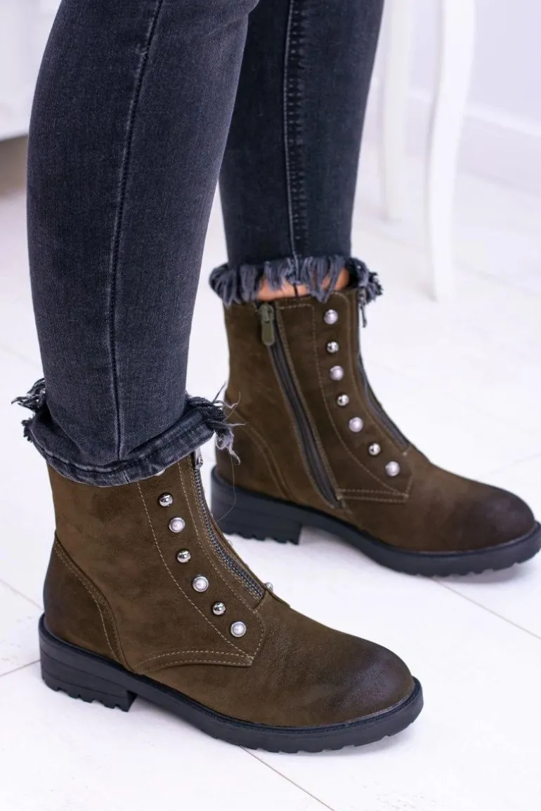 Damskie Botki Ocieplane Trapery Khaki Dowito