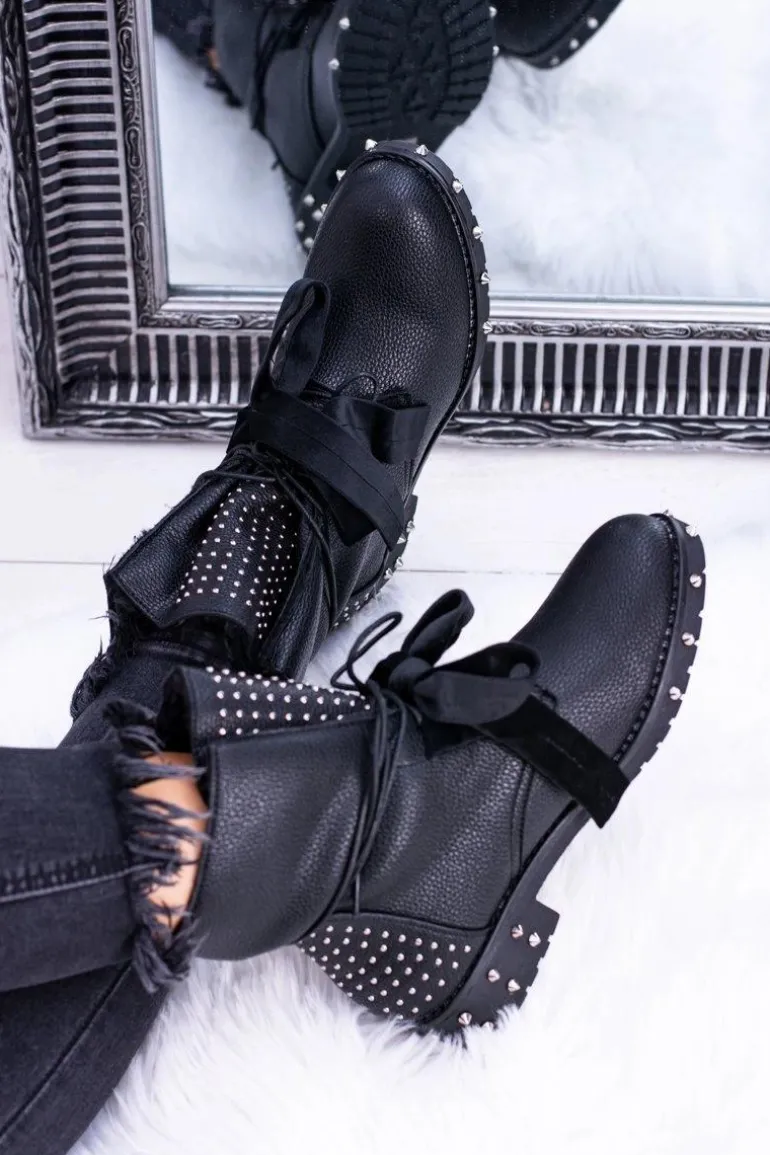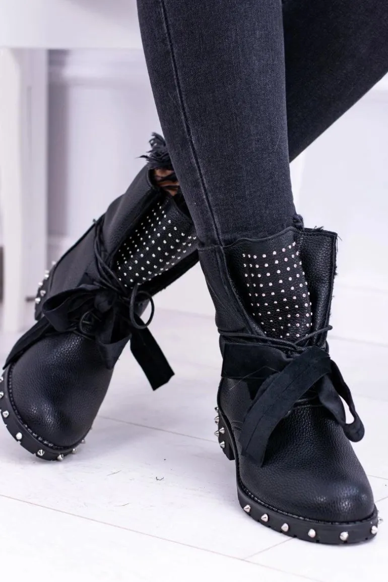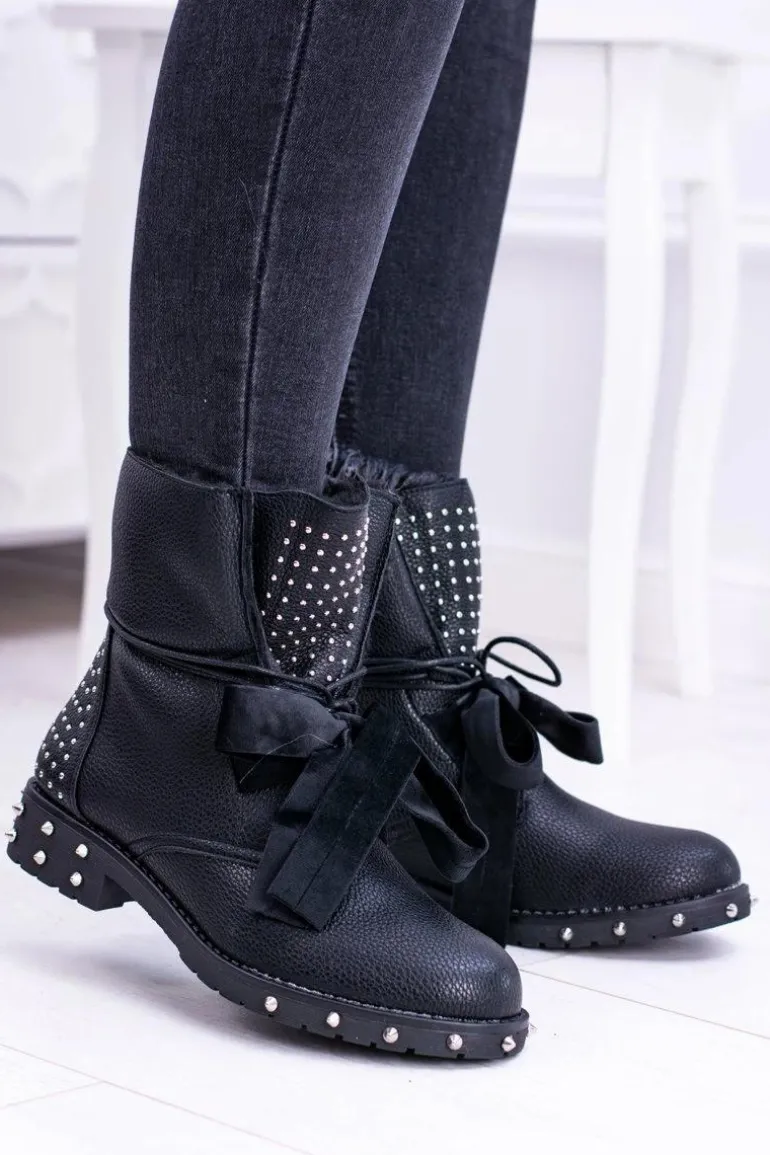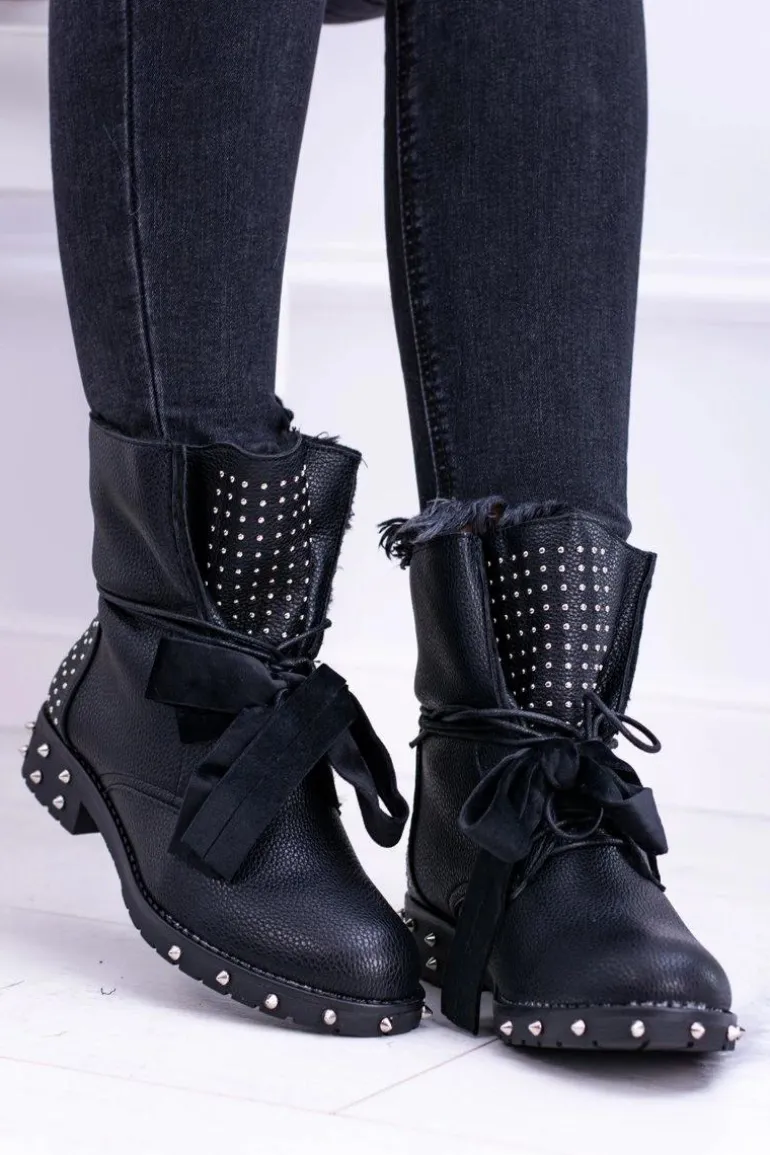 Damskie Botki Ocieplane Z Kolcami i Dżetami Neso