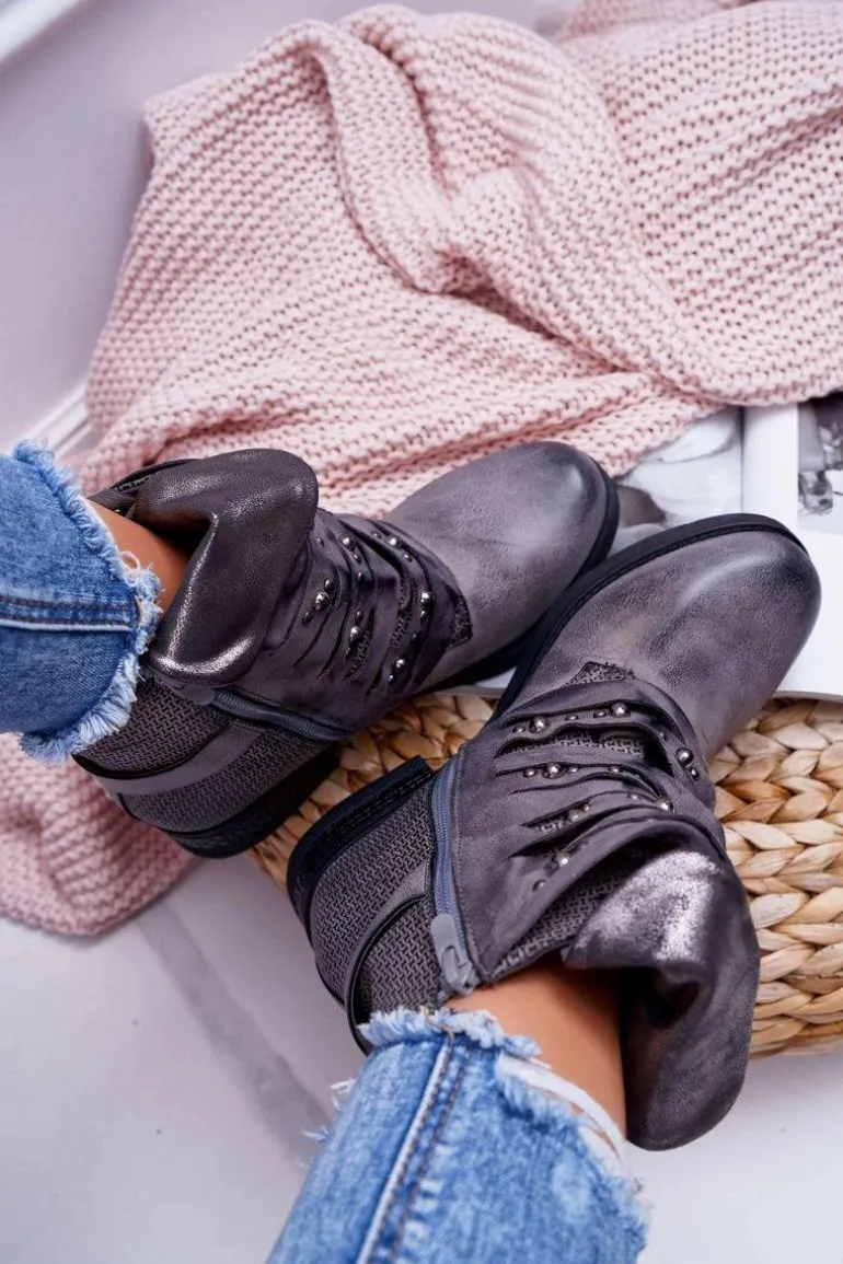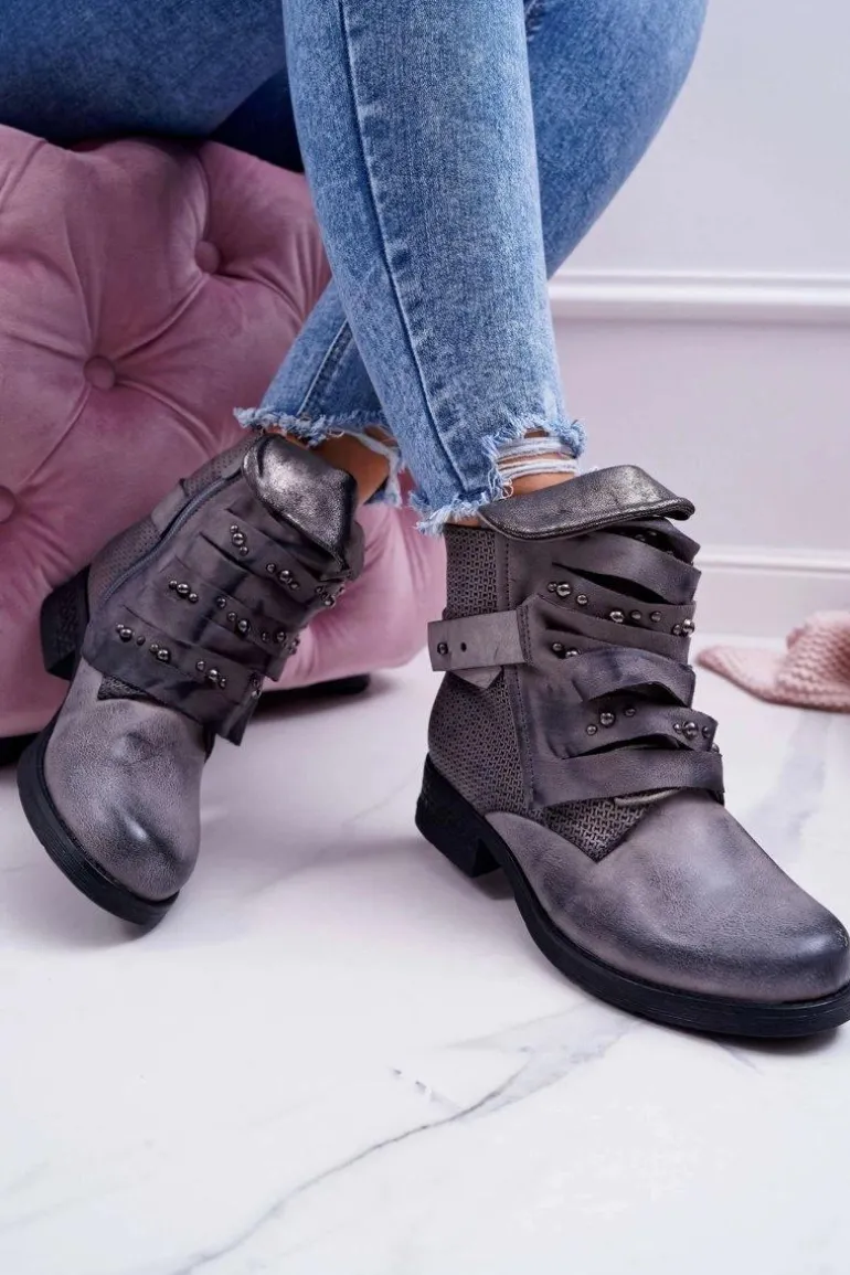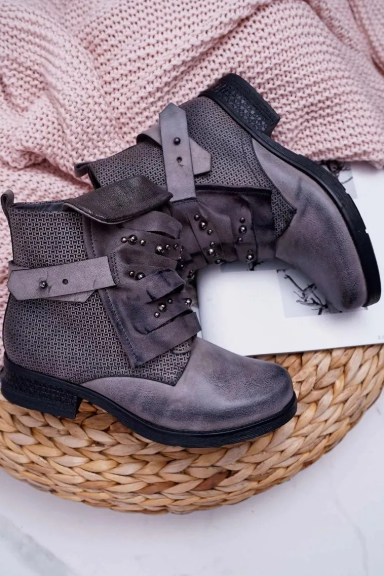 Damskie Botki Płaski Obcas Ciepłe Szare Debra