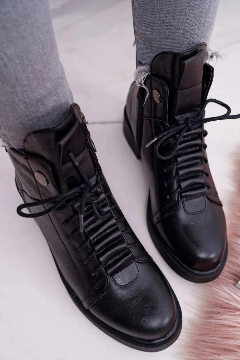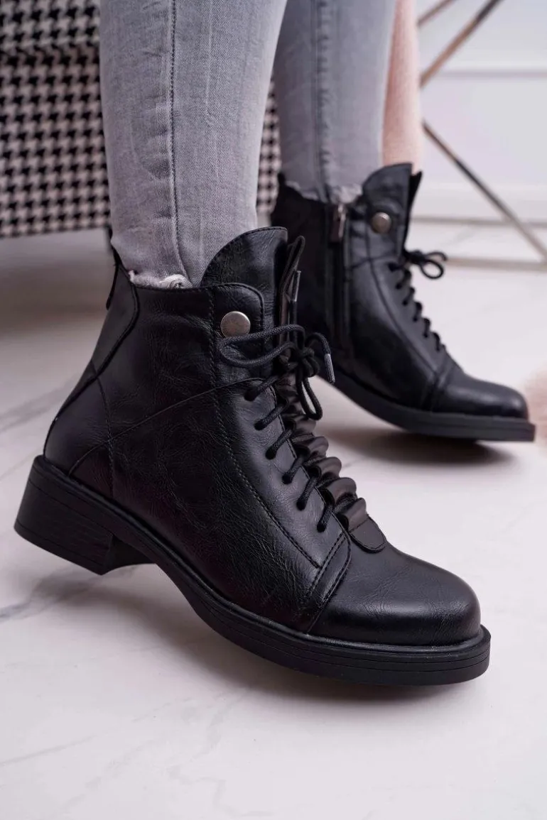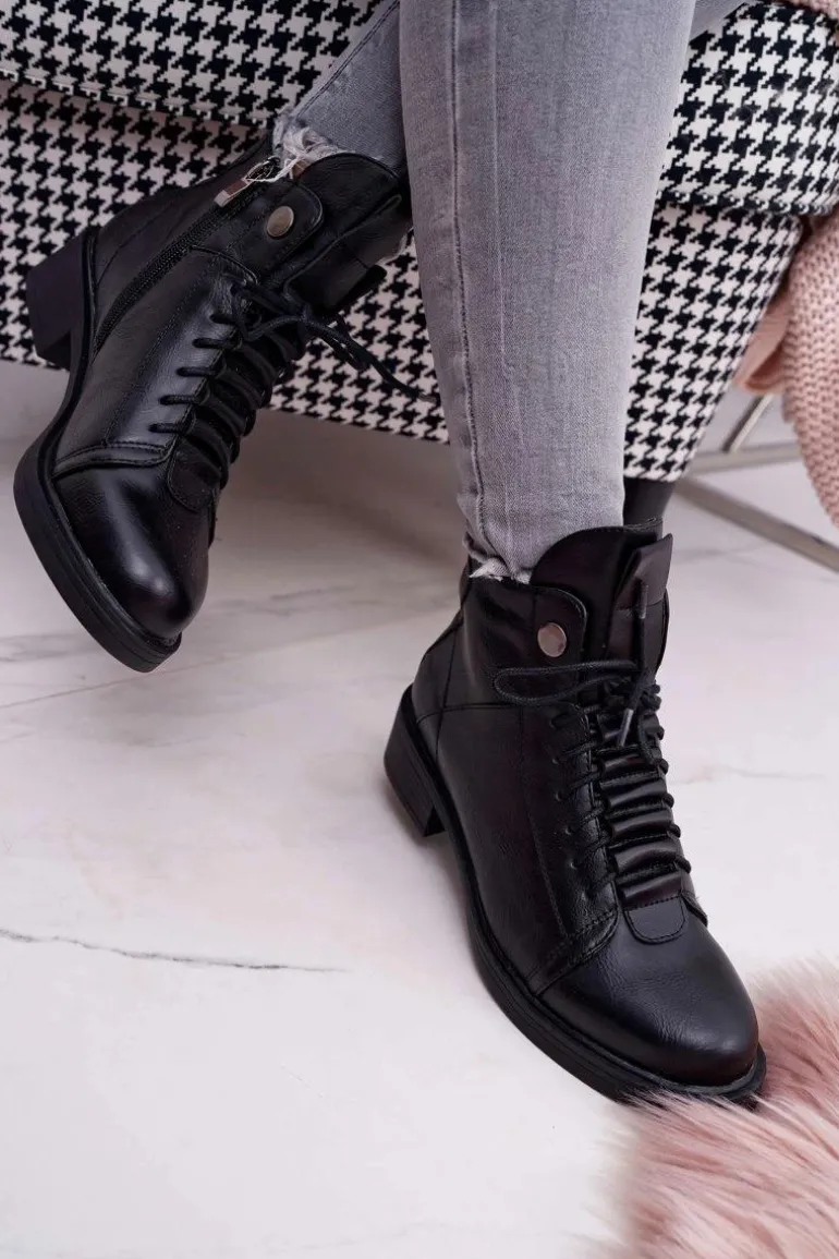 Damskie Botki Płaski Obcas Ocieplane Czarne Livin