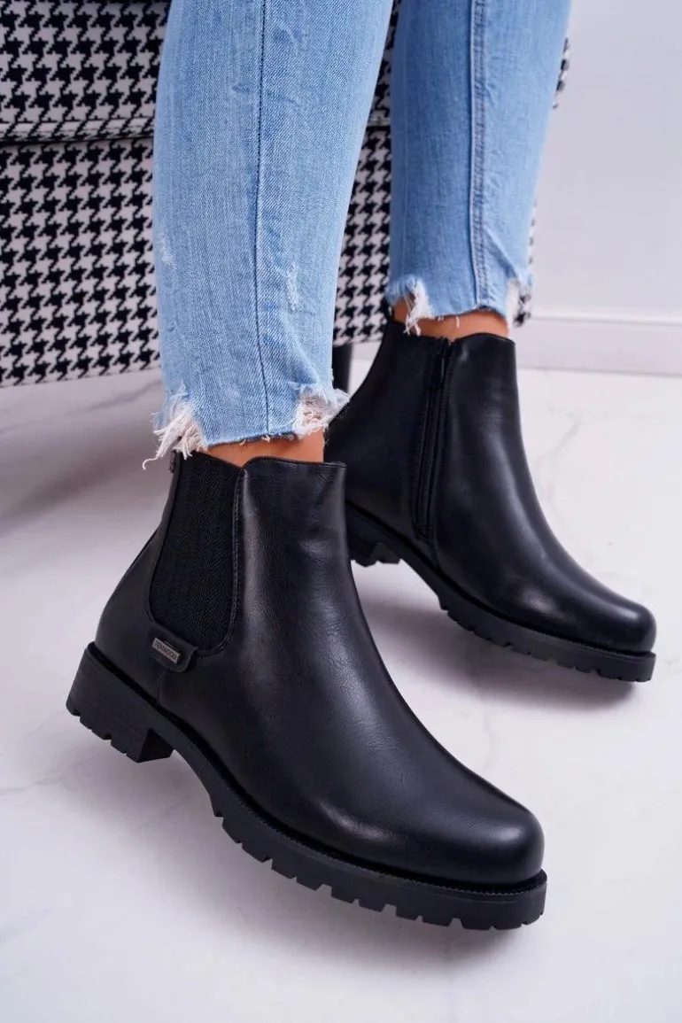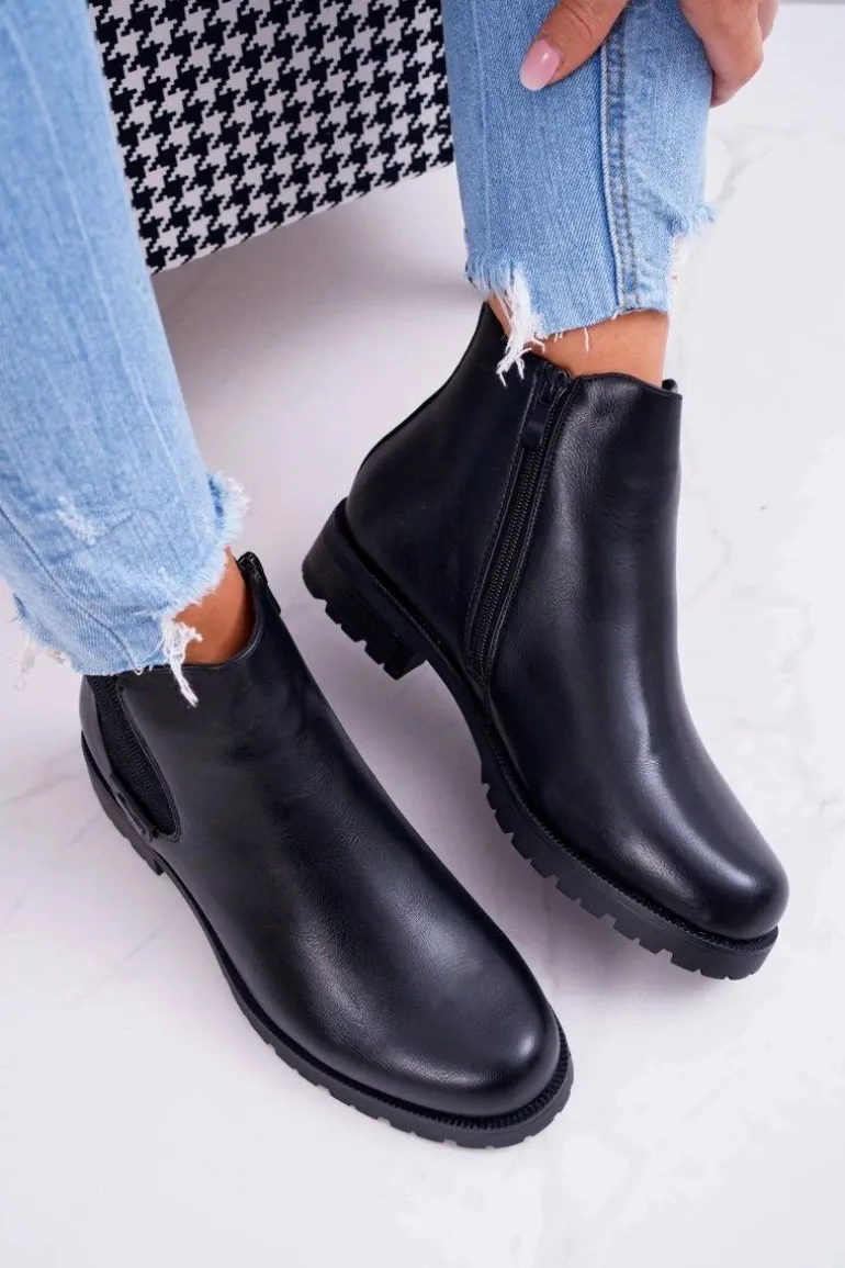Nie wiesz co na siebie włożyć? To nic prostszego! Wybierz czarne botki, które pasują dosłownie do każdej stylizacji. Eko-skóra z której zostały wykonane pięknie wygląda a zastosowanie elastycznej gumki na boku sprawi że lepiej dopasują się do nogi. Wnętrze buta pokryte ciepłym futerkiem, które zapewni nam komfort nawet w chłodniejsze dni. Suwak na boku ułatwi zakładanie. Przy wyborze rozmiaru prosimy sugerować się tabelą rozmiarów.