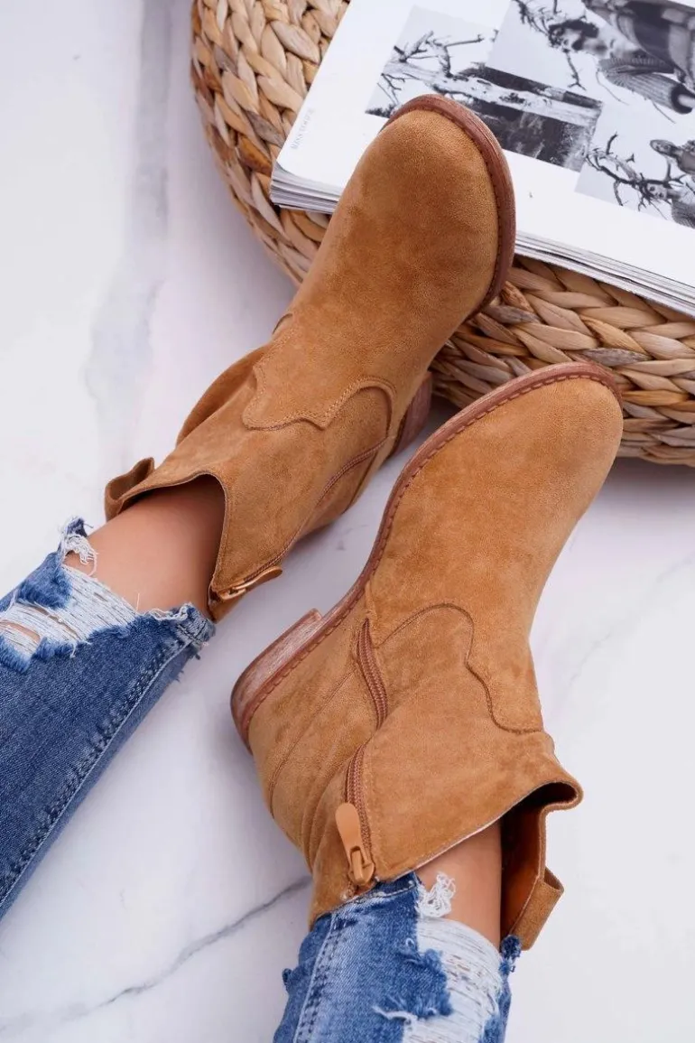 Damskie Botki Saszki Na Koturnie Camel Ellen