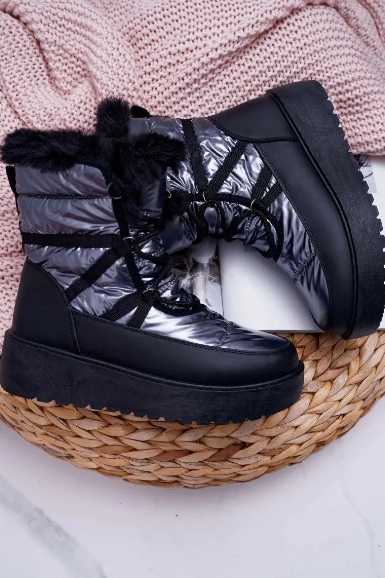 Damskie Botki Śniegowce Ocieplane Futerkiem Srebrne Calma