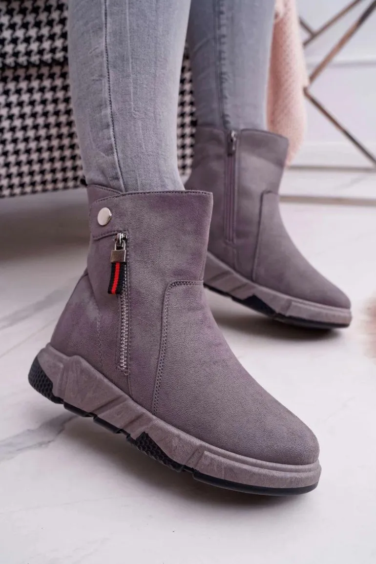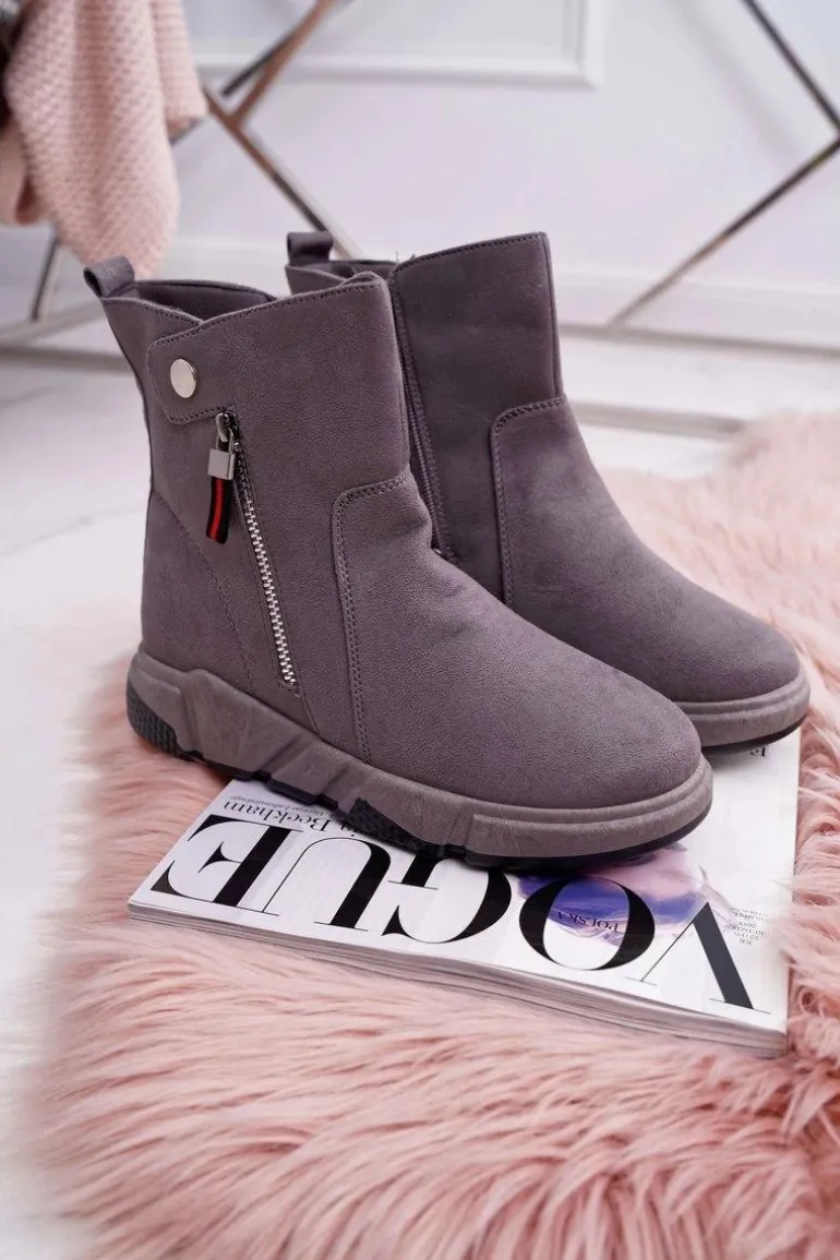 Damskie Botki Sportowe Ocieplane Szary SJ1938 Nefera