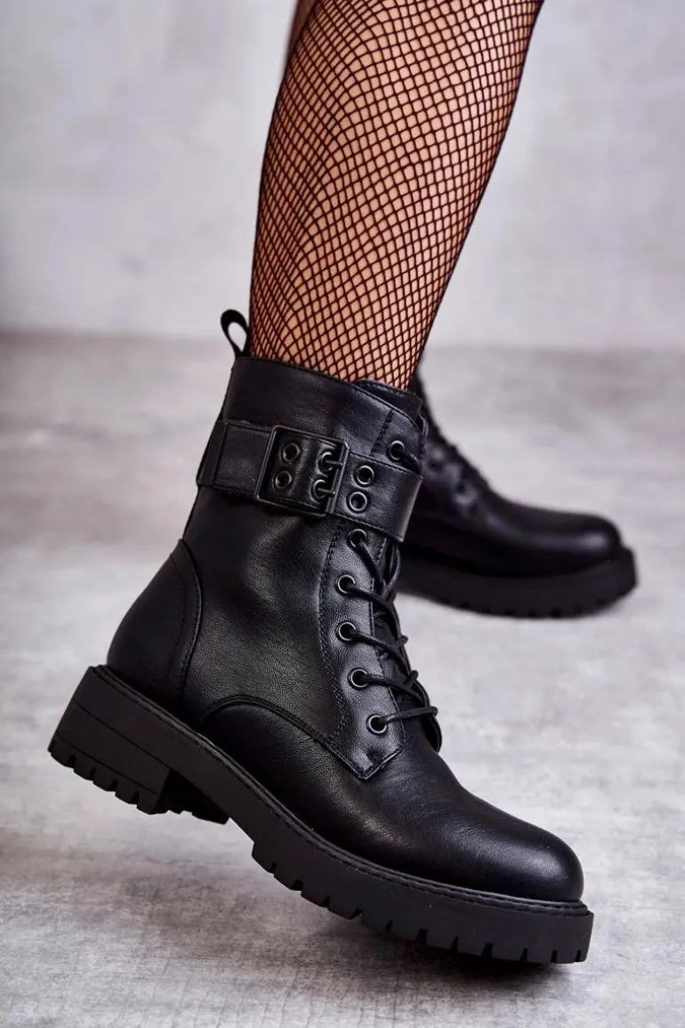 Modne botki damskie zostały wykonane z eko skóry. Posiadają suwak na boku cholewki, sznurowanie oraz klamrę z regulowanym paskiem. W środku znajduje się ocieplenie w postaci koca obuwniczego. Buty dodatkowo posiadają usztywniany zapiętek. Świetny model na jesienne, chłodne dni! Koniecznie sprawdź także pozostałe modele botków dostępne na naszej stronie! Przy wyborze rozmiaru prosimy sugerować się tabelą rozmiarów.