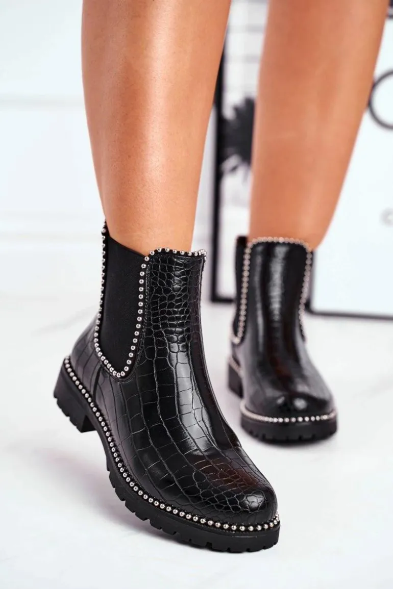 Damskie Botki Sztyblety Ciepłe Czarne Elvina