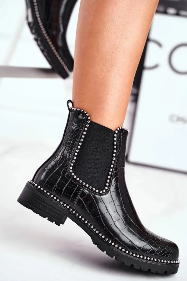 Już są! Botki w Twoim stylu – w takich butach zakocha się każda osoba ceniąca sobie mocniejsze akcenty w swoich stylizacjach. Botki wewnątrz zostały ocieplone kocem obuwniczym, co zagwarantuje nam ciepło w chłodniejsze dni. Fason sztybletów z gumkami po obu stronach cholewki zagwarantuje idealne dopasowanie do stopy oraz łatwość w zakładaniu. Przy wyborze rozmiaru prosimy sugerować się tabelą rozmiarów.