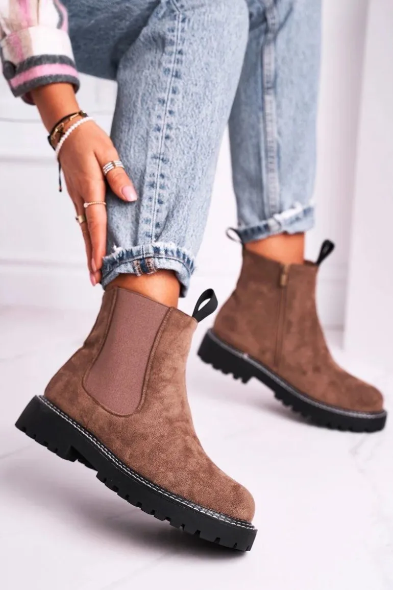Świat mody nieustannie staje na głowie, by nas zaskoczyć. Spójrz zatem na te przepiękne botki o fasonie sztybletów! W całości wykonane z ekologicznego zamszu, wewnątrz ocieplone kocem obuwniczym z krótkim włosiem, więc o ciepło w chłodnie dni nie musisz się martwić. Wysoka cholewka z gumkami to gwarancja idealnego dopasowania a suwak po wewnętrznej stronie cholewki zapewni nam szybkie zakładanie. Przy wyborze rozmiaru prosimy sugerować się tabelą rozmiarów.