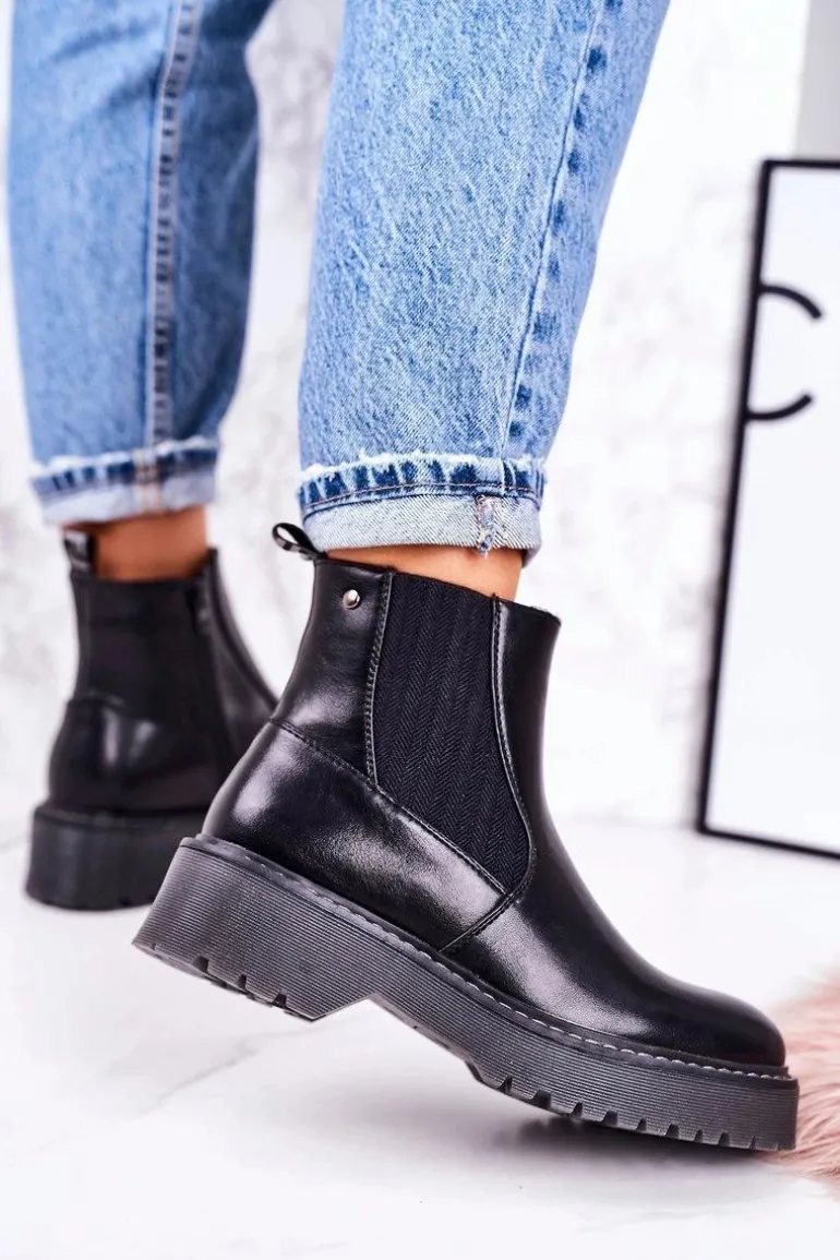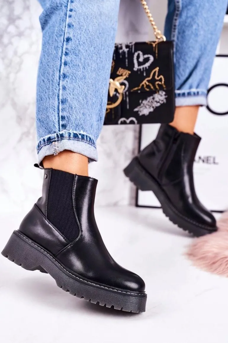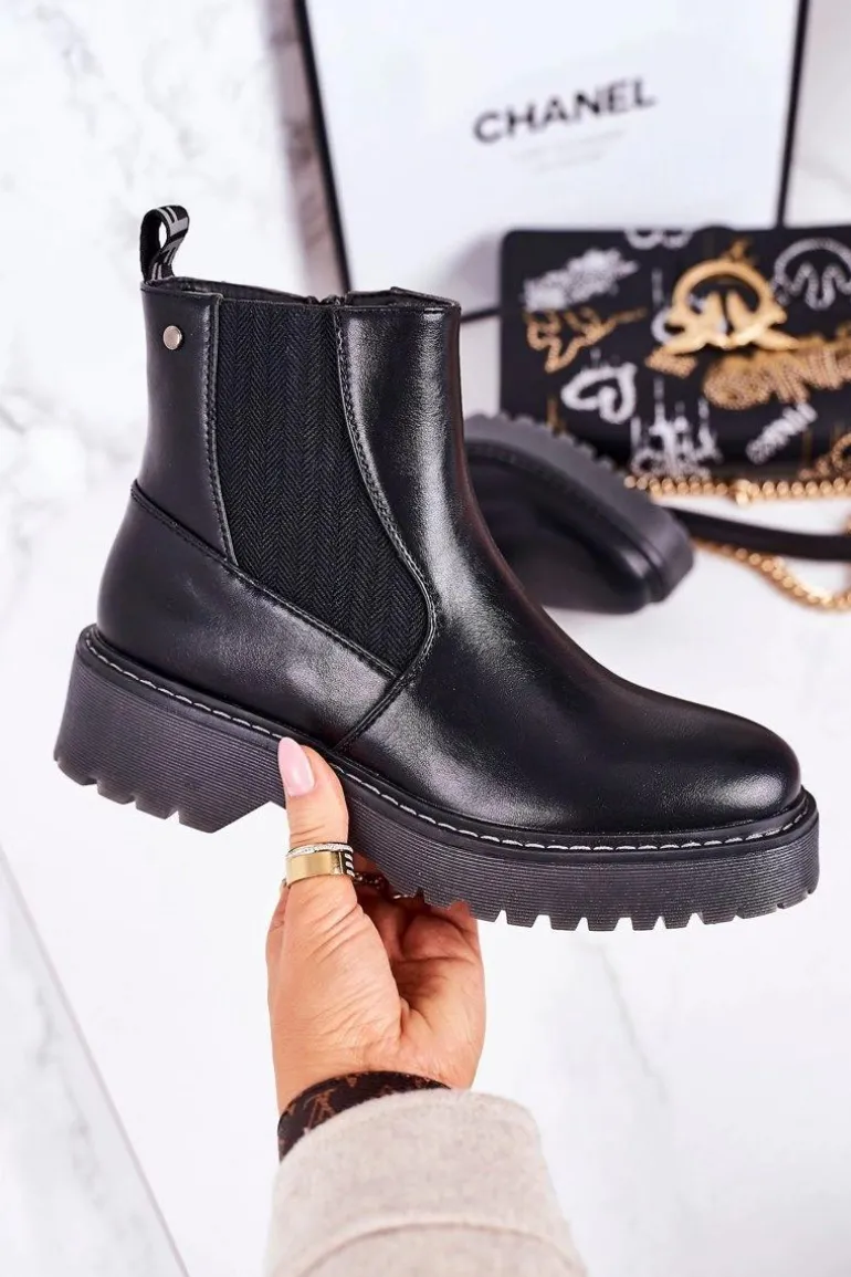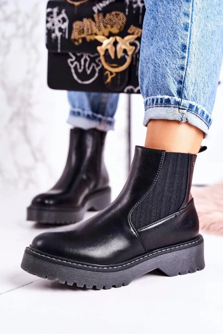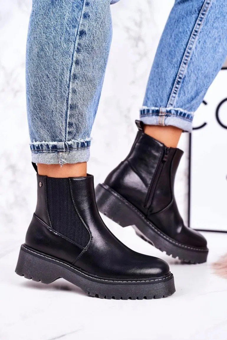 Damskie Botki Sztyblety Na Gumowej Podeszwie Czarne Voyager