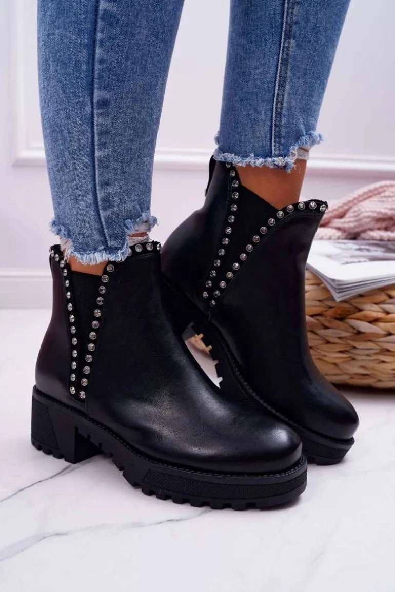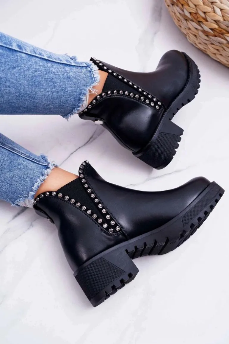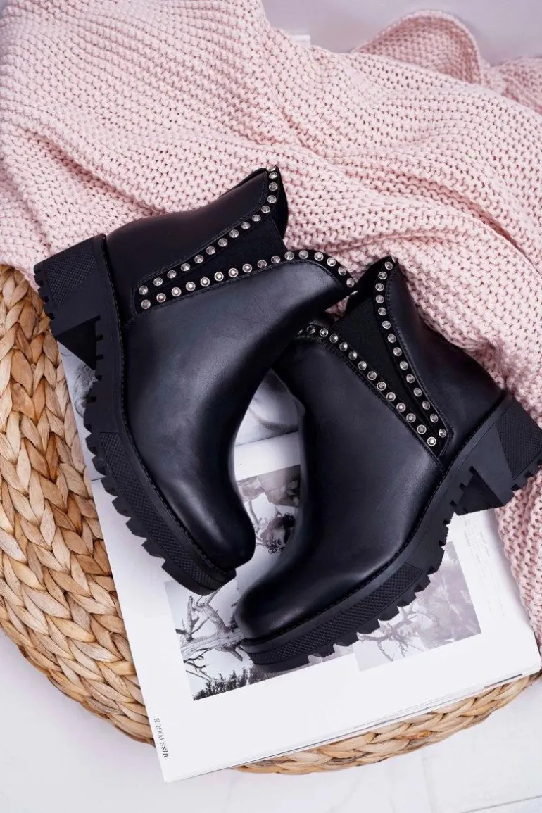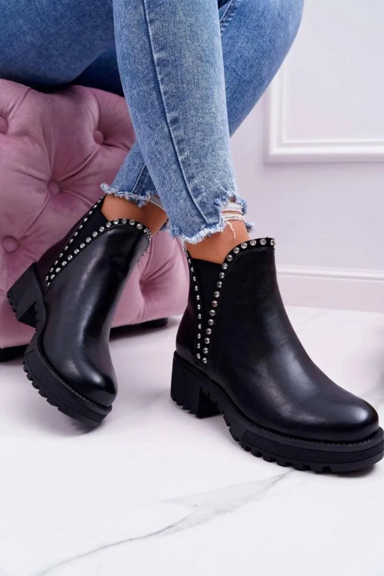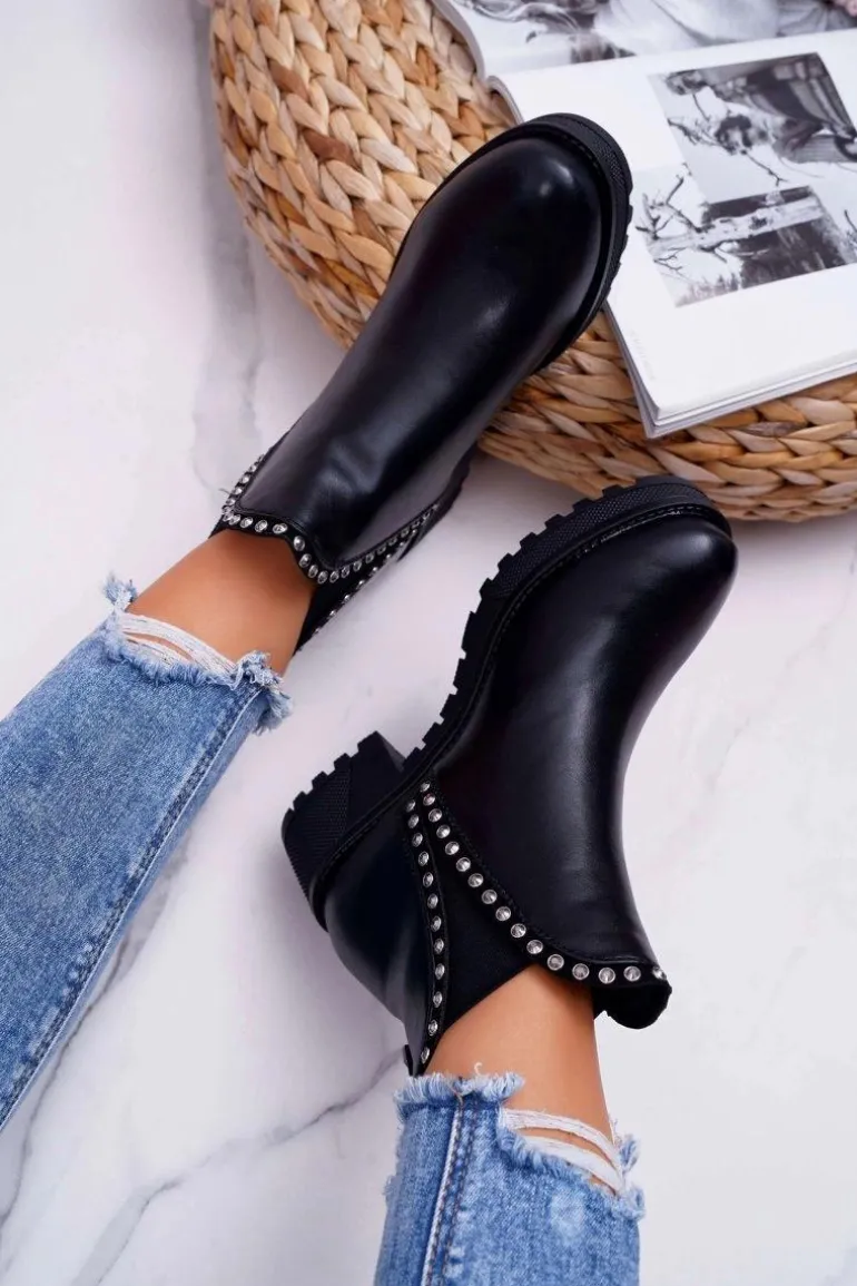 Damskie Botki Sztyblety Z Cyrkoniami Czarne Sissy