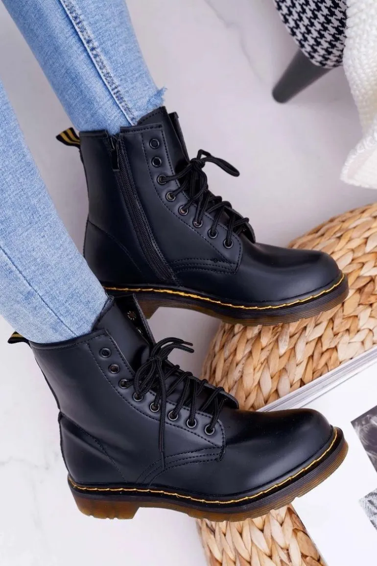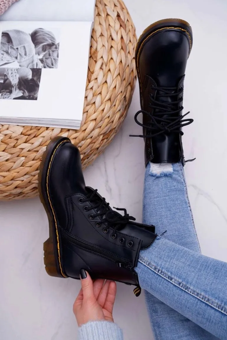 Damskie Botki Trapery Glany Czarne Gangsta